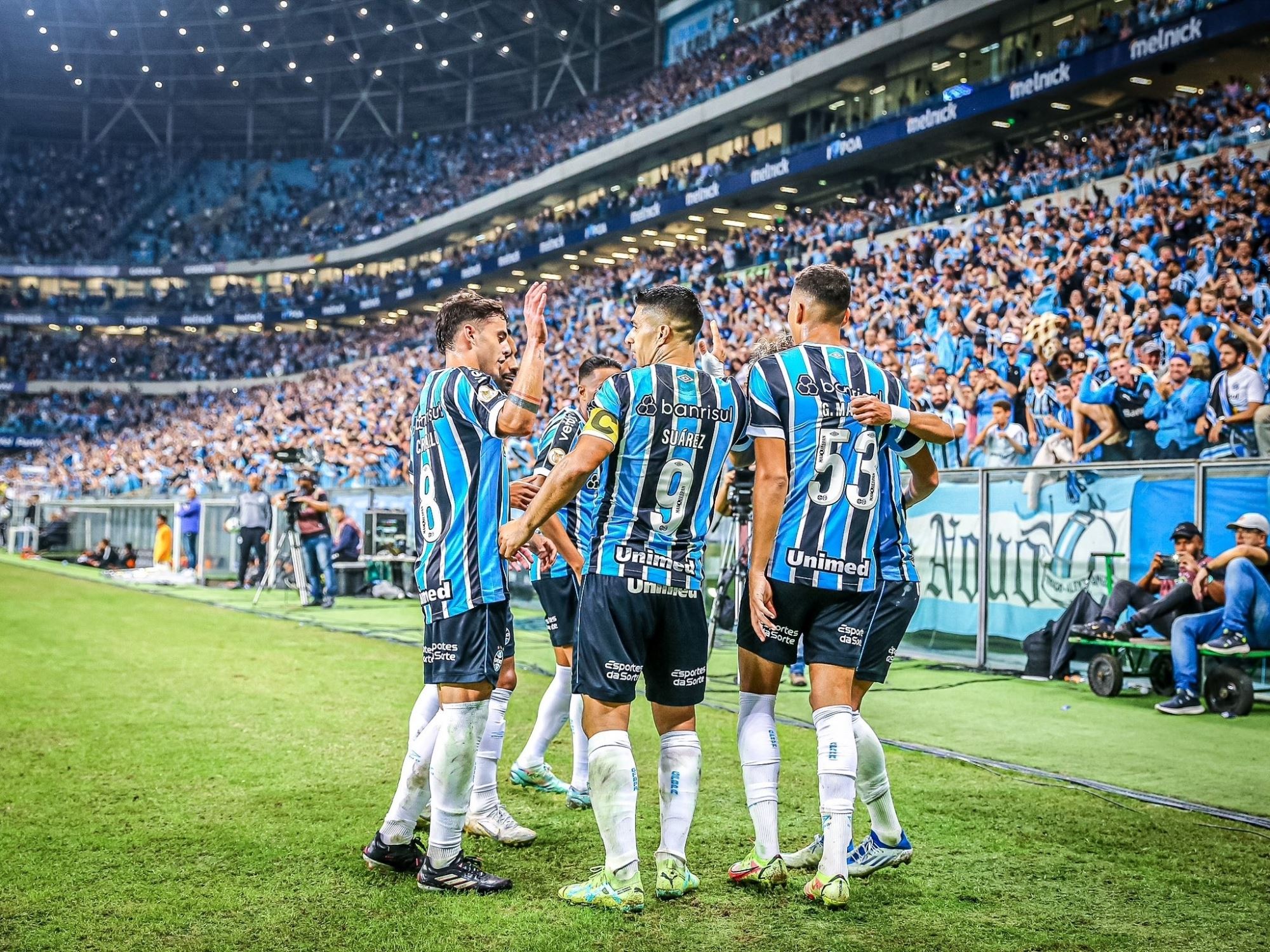 لویس سوارێز بە تۆمارکردنی گۆڵێک و دروستکردنی گۆڵێکی دیکە، سەرکردایەتی بردنەوەیەکی گەورەی یانەی گرێمیۆی کرد لە رکابەرییەکانی خولی بەرازیلدا.