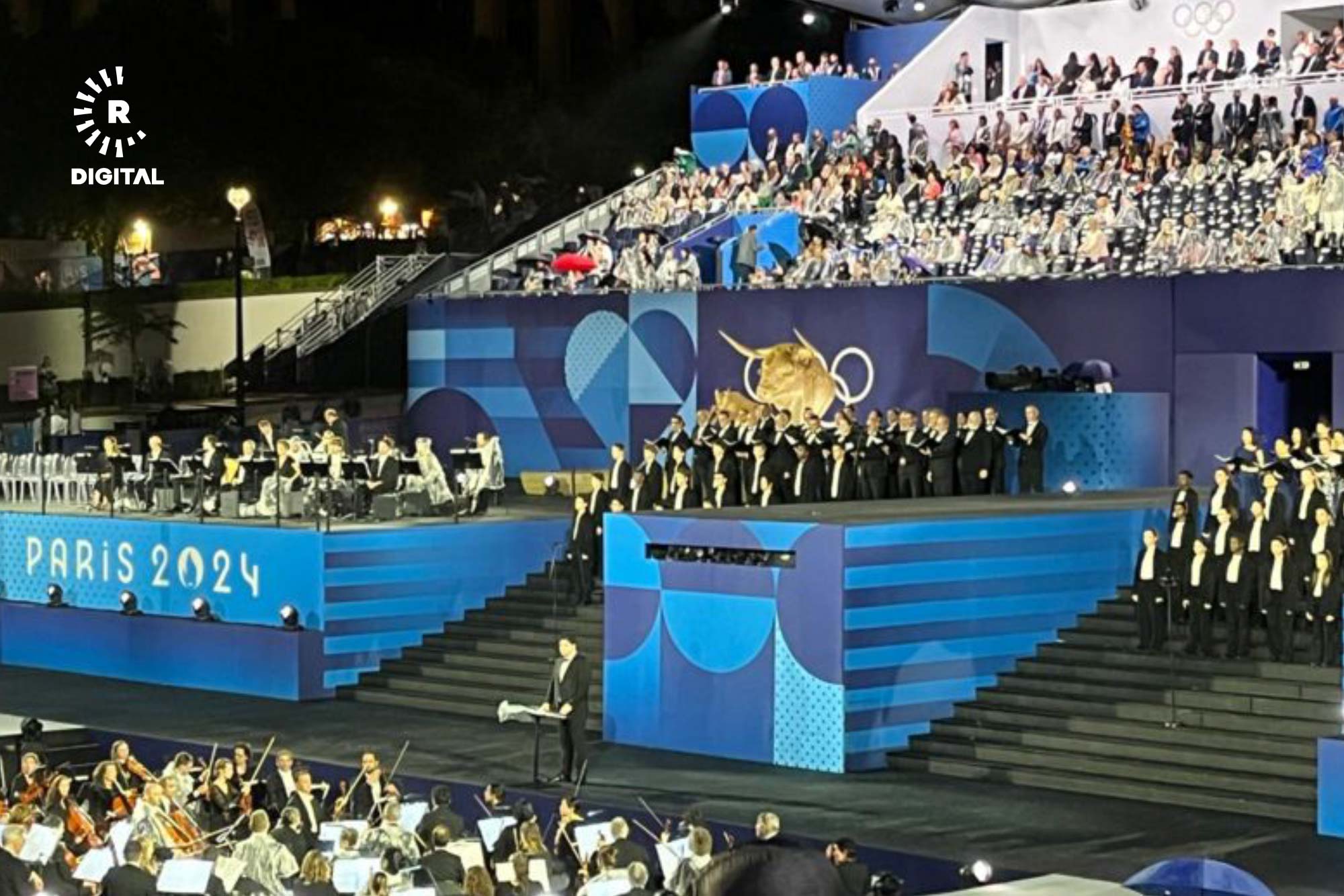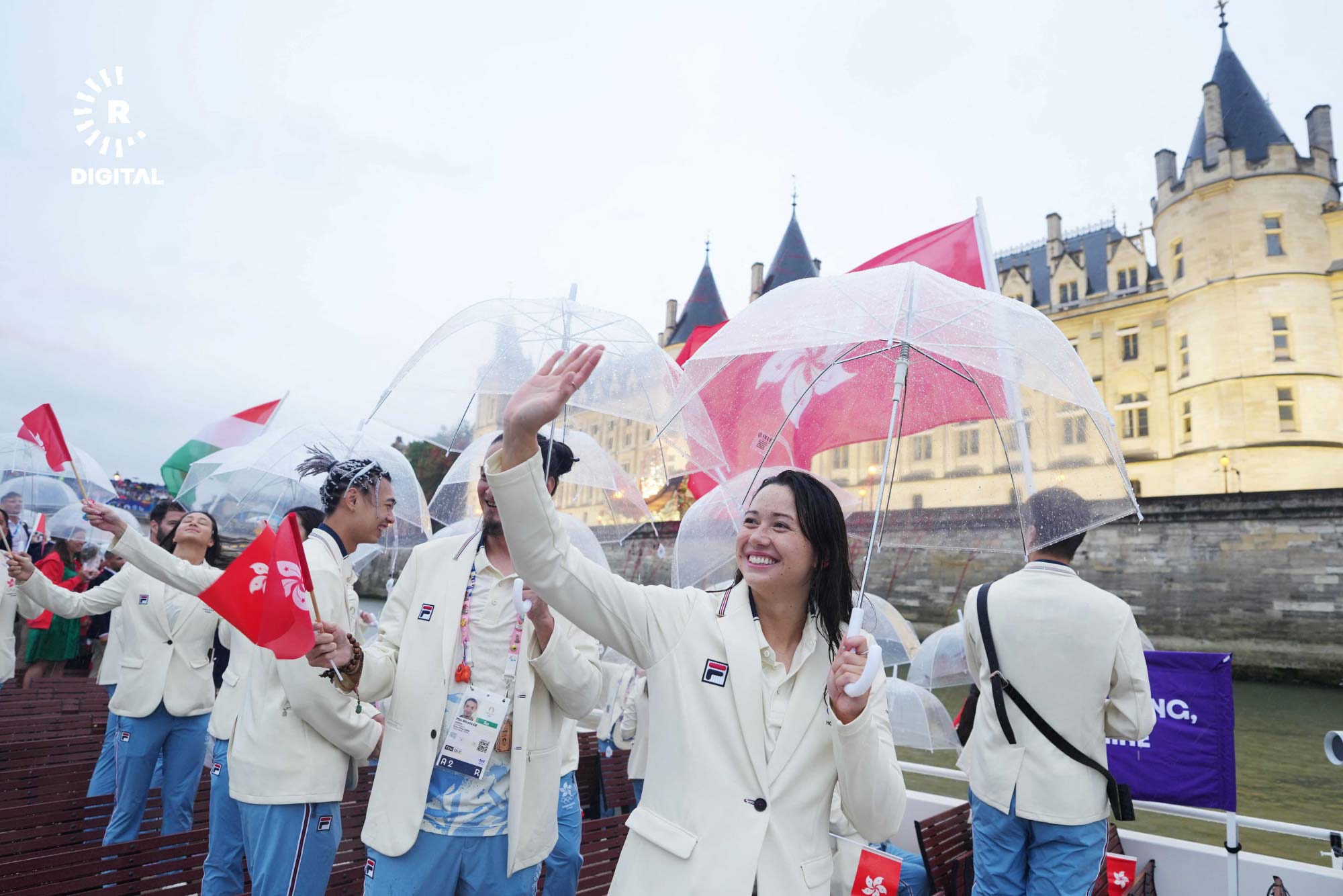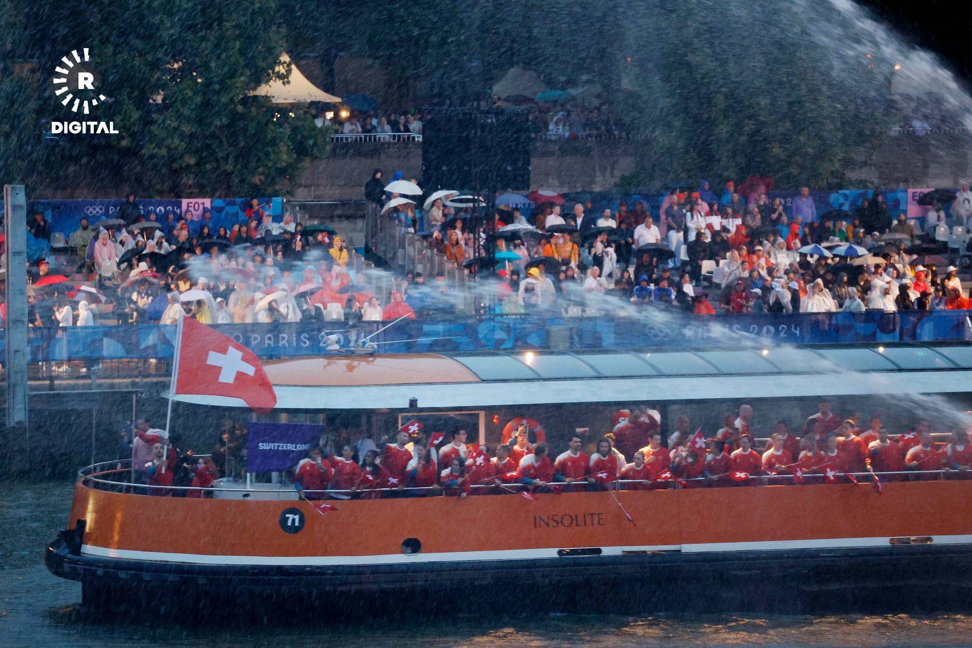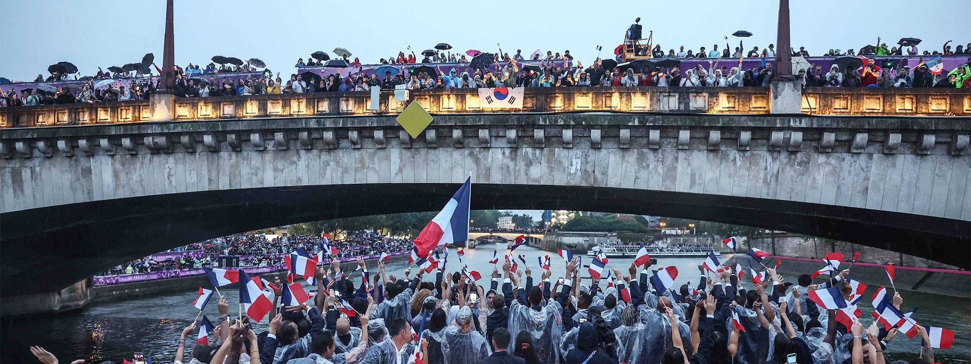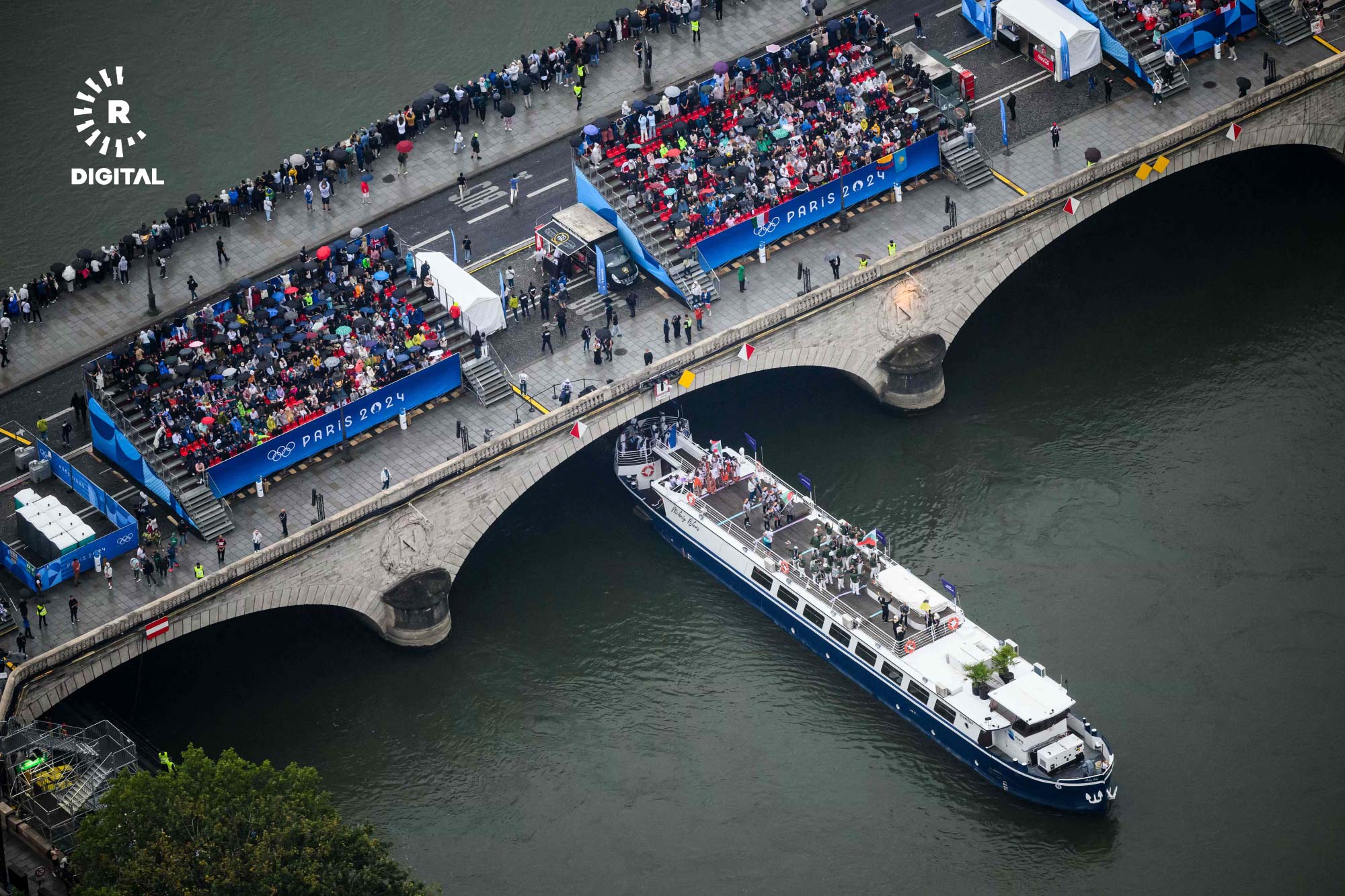 بۆ یەکەمجار لە مێژوودا رێوڕەسمەکە دوور لە یاریگەکان و بە درێژایی رووباری سێن بەڕێوەچوو، وەرزشڤانان بە بەلەمەوە و بە هەڵگرتنی ئاڵای وڵاتەکانیان سڵاویان لە کامێراکان کرد.