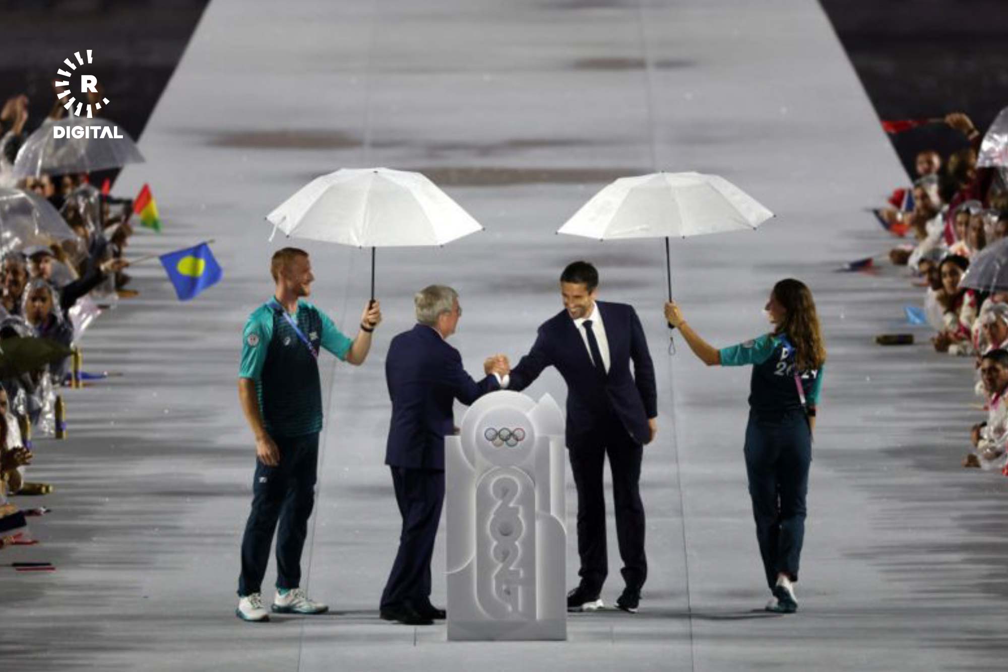لەگەڵ نمەی باراندا ئیمانوێل ماکرۆن دەستپێکردنی 33یەمین وەشانی ئۆڵۆمپیادی راگەیاند.