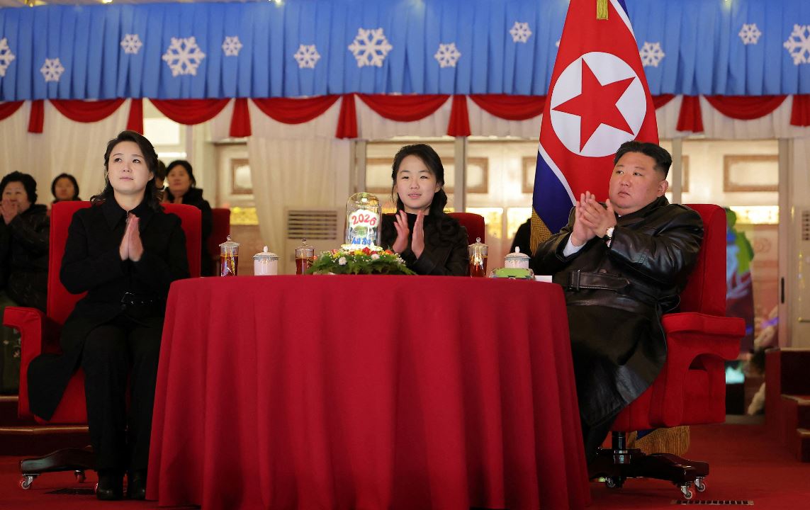 سەرۆکی کۆریای باکوور بە یاوەریی خێزانەکەی بەشداری لە ئاهەنگێکی جەماوەریی گەورەدا کرد بۆ پێشوازیکردن لە ساڵی نوێ؛ لە دیمەنێکی دەگمەندا میدیای فەرمیی وڵاتەکە کچەکەی کیم جۆنگ ئوونیان نیشاندا کە ماچی باوکی دەکات.