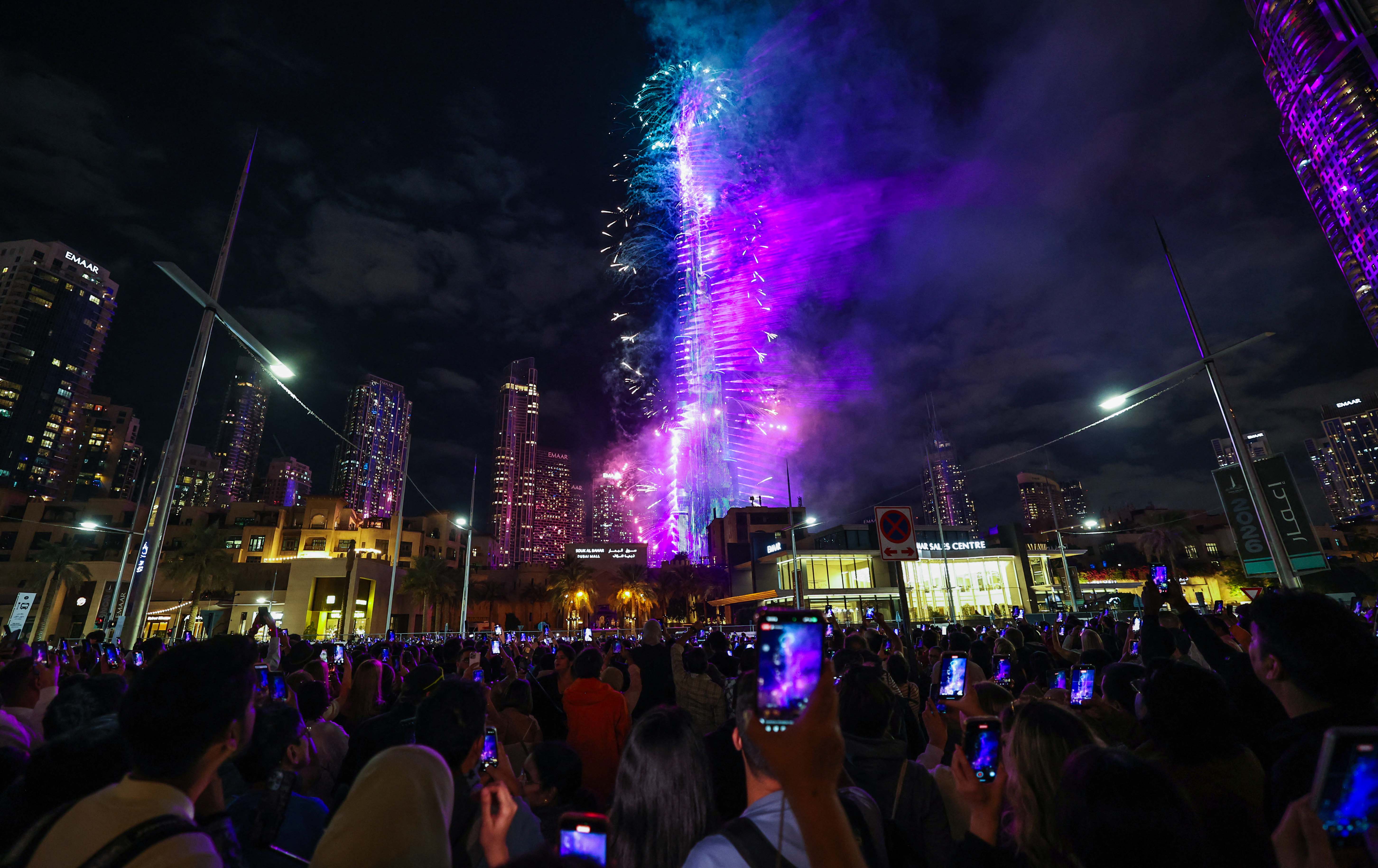 ئیمارات بە تایبەتی شاری دوبەی بە نمایشە هەرە گەورە و گرانبەهاکانی یاری ئاگرین ناسراوە، ژمارەیەکی زۆری گەشتیار و دانیشتووانی ئەو وڵاتە لە دەوروبەری بورجی خەلیفە کە تازە دەوروبەرە ئاوییەکەی نوێ کراوەتەوە کۆبوونەوە، بە دیمەنی تەکنەلۆژیای پێشکەوتووی رووناکی و لەیزەر لە دەستپێکی ساڵی نوێدا دوبەی هەمووانی سەرسام کرد.