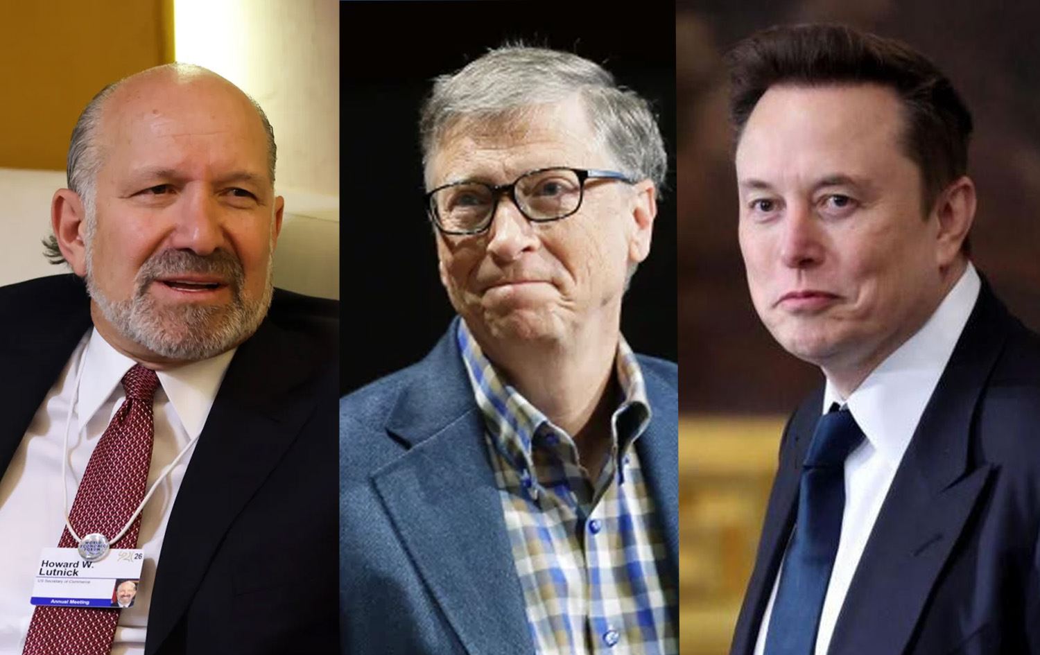 ئیلۆن مەسک، خاوەنی تێسلا؛ بیڵ گەیتس، خاوەنی مایکرۆسۆفت و هاوارد لووتنیک، وەزیری بازرگانیی ئیدارەی ترەمپ