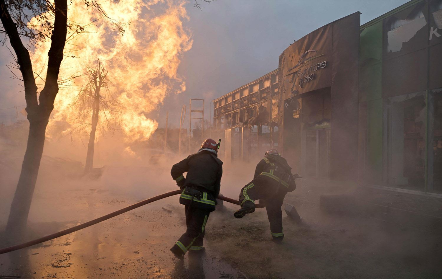 دوای موشەکبارانی رووسیا بۆسەر ناوچەیەکی ئۆکراینا، ئاگرکوژێنەوەکان سەرقاڵی کۆنترۆڵکردنی ئاگرەکەن