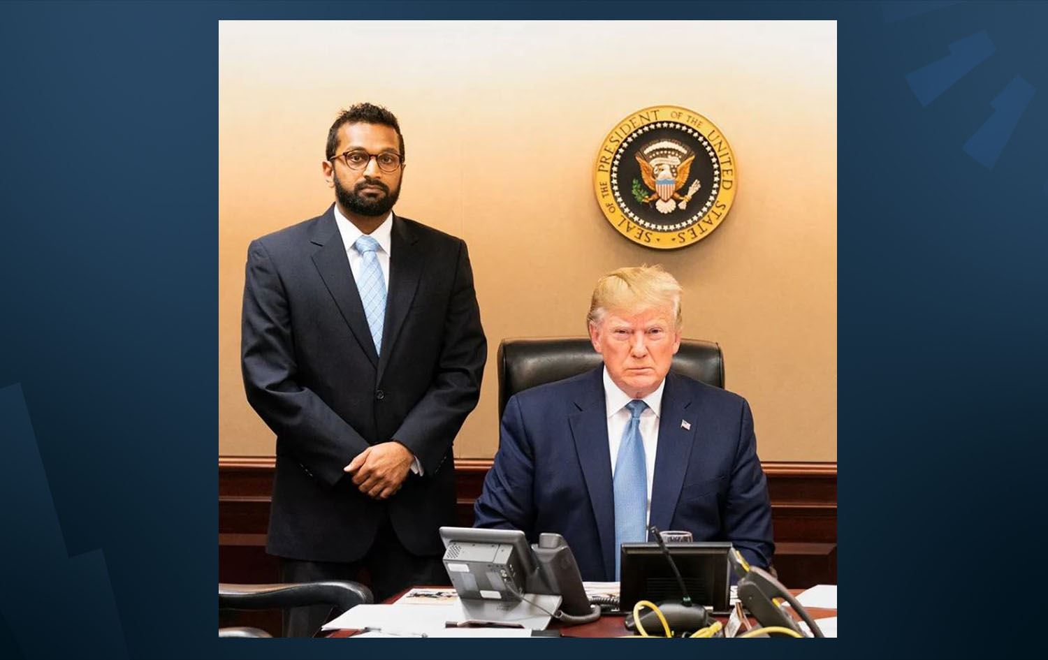 وێنەیەکی ئەرشیڤیی کاش پاتیل و دۆناڵد ترەمپ، کاش وێنەکەی لە تۆڕی کۆمەڵایەتیی ئێکس بڵاوکردووەتەوە