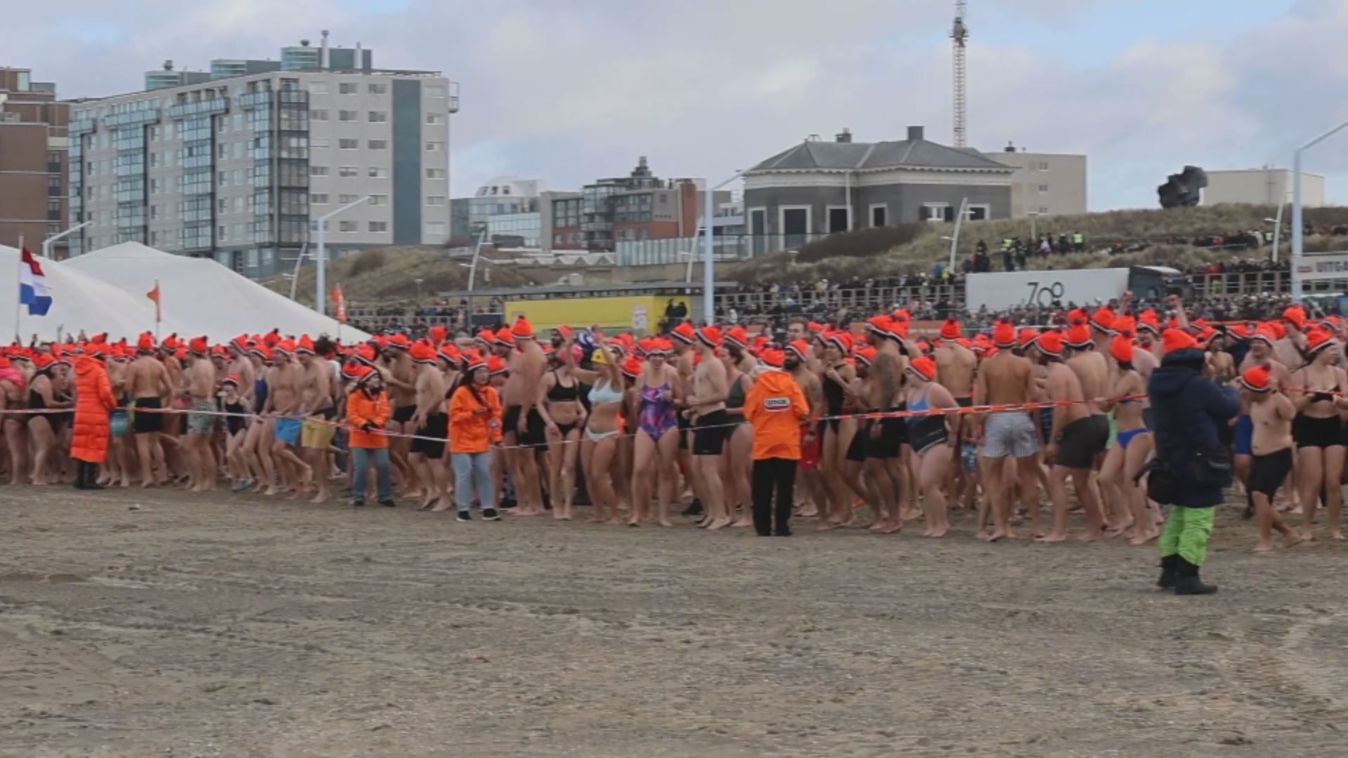 هەزاران کەس لە کەناراوەکانی سخێفینگن لە هۆڵەندا دوای ئەوەی خۆیان گەرم کرد، خۆیان هەڵدایە نێو ئاوی ساردەوە؛ دەیانەوێ ساڵی نوێیان بە گەرموگوڕی دەستپێبکات.