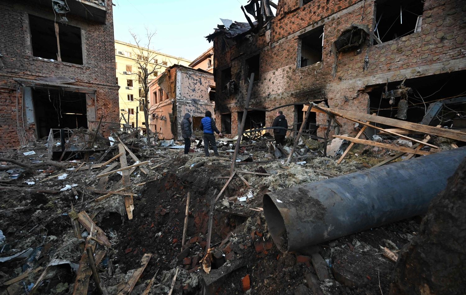 گەڕەکێکی شاری خارکیڤ لە ئۆکراینا کە بەهۆی هێرشی درۆنی رووسیاوە وێران بووە لە 31-12-2023، وێنە: SERGEY BOBOK / AFP