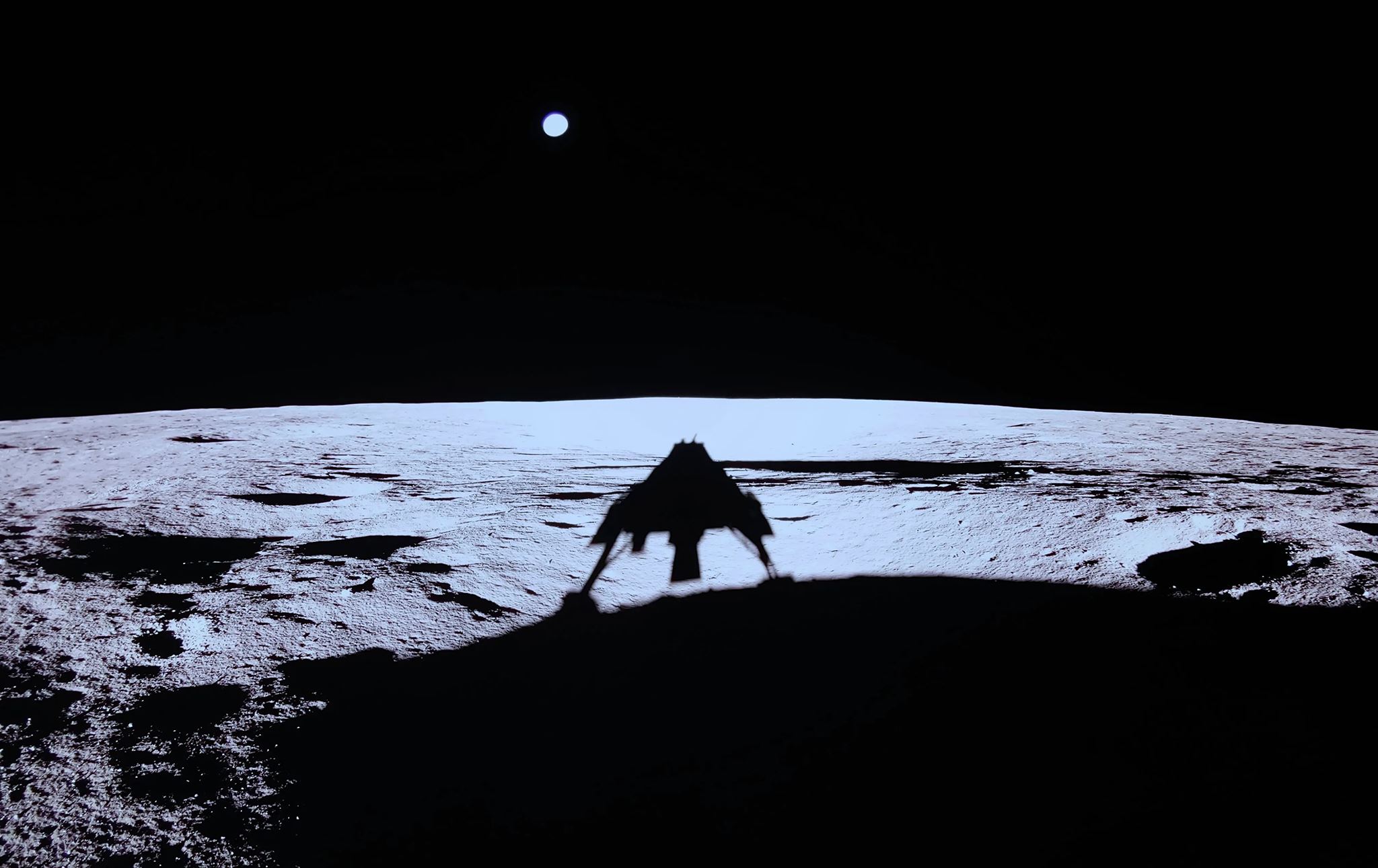 یەکەمین وێنەی کەشتییەکە، کە لەسەر رووی مانگ گیراوە، گەیشتەوە بە زەوی. ئەو بازنە شینە بچووکەی دەیبینن، هەسارەکەمانە.