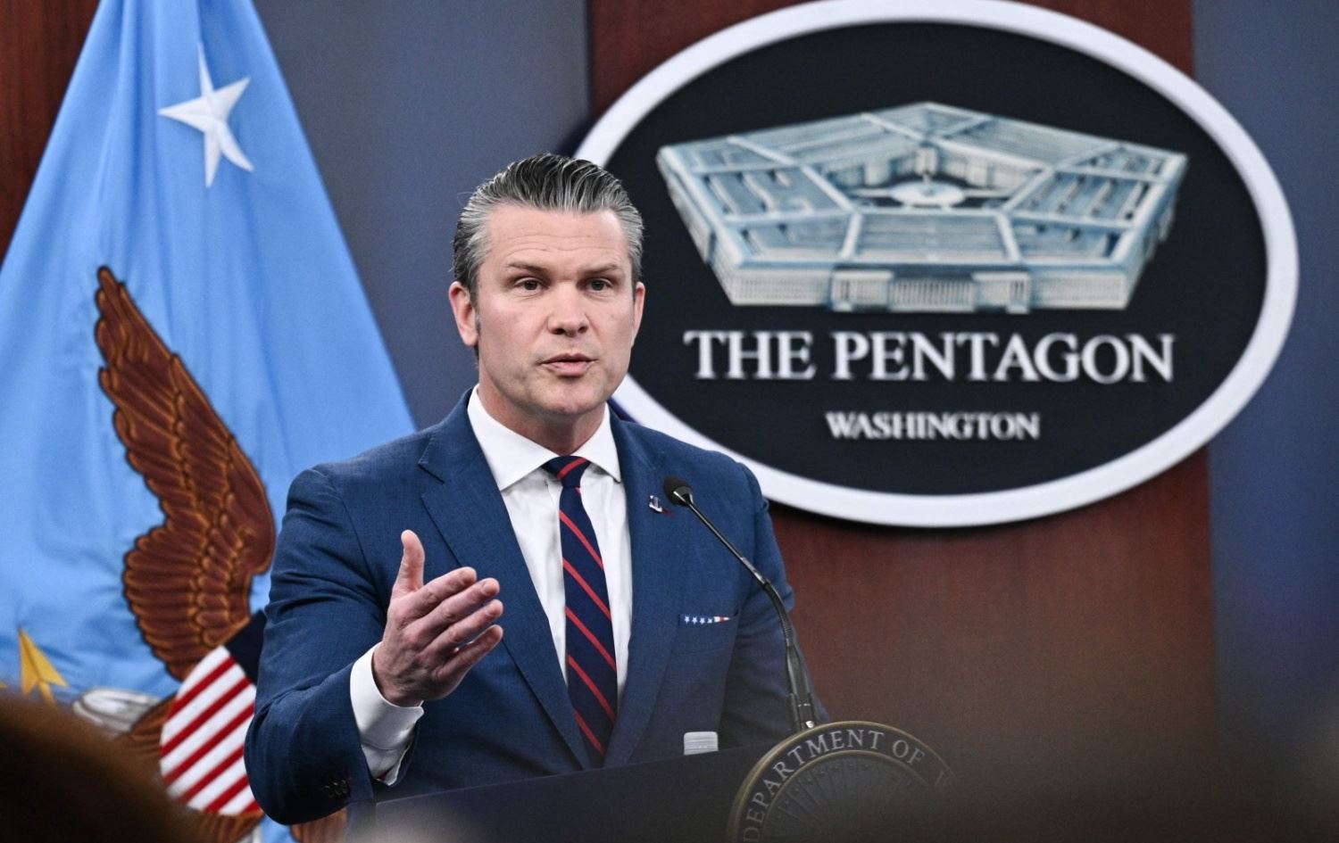 رۆژی دووشەممە، 2ی ئاداری 2026، لە واشنتن دی سی، پیت هێگسەس، وەزیری جەنگی ئەمریکا و دان کەین، سەرۆکی دەستەی هاوبەشی سوپاسالاری ئەمریکا، لە کۆنگرەیەکی رۆژنامەڤانیدا وردەکاریی نوێی ئۆپەراسیۆنی "تووڕەیی داستانئاسا"یان بۆ سەر ئێران خستەروو.