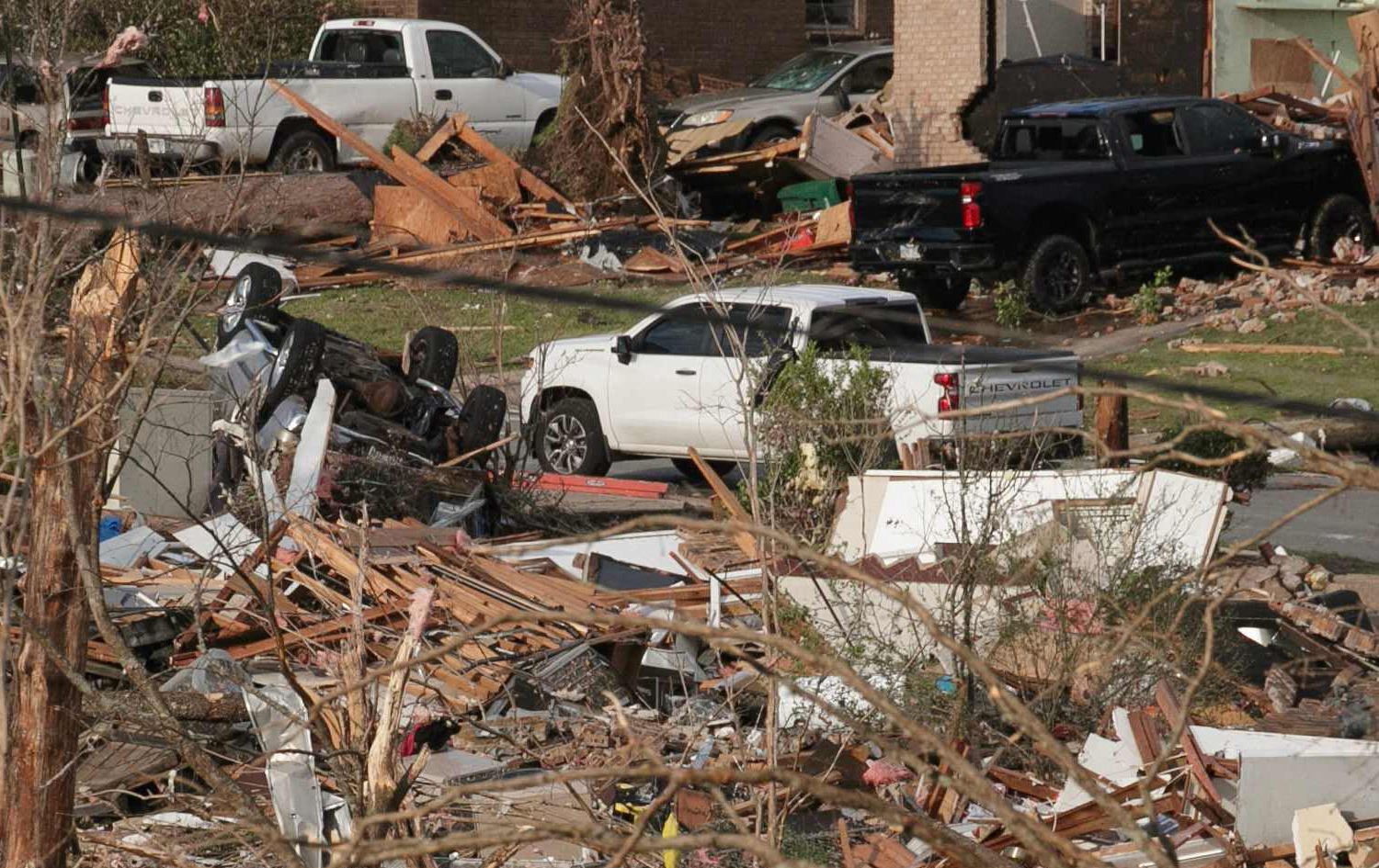 گەڕەکێکی شاری لیتڵ رۆک لە ویلایەتی ئارکنساسی ئەمریکا کە بەهۆی گەردەلوولەوە وێران بووە، وێنە: Benjamin Krain / GETTY IMAGES NORTH AMERICA / AFP