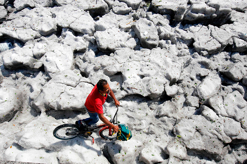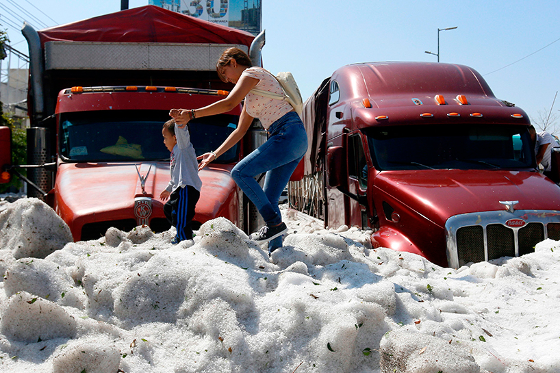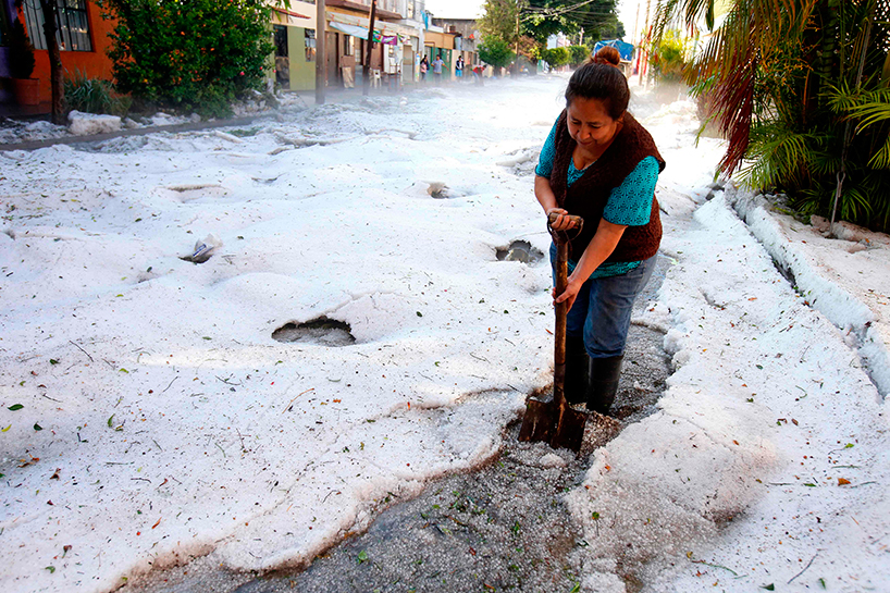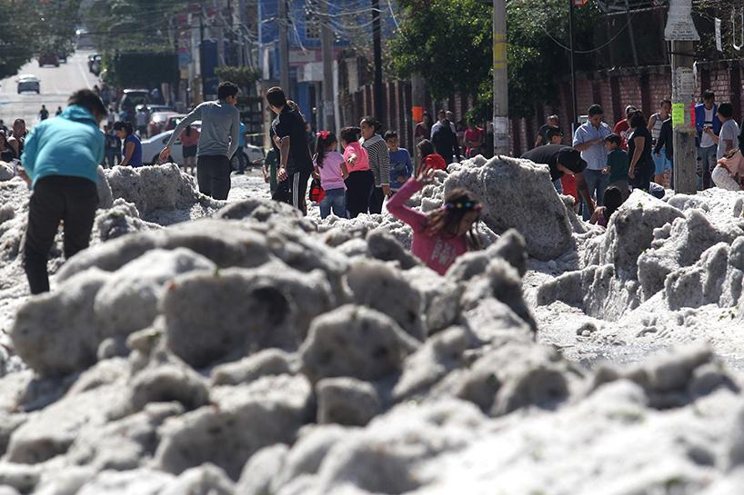خەڵکی شاری گوادەلەهارا لە مەکسیک لە چەند هەفتەی رابردوودا هەستیان بە بەرزبوونەوەی پلەی گەرما دەکرد بەهۆی هاوین، بەڵام لە کۆتایی هەفتەی رابردوو هەموو شتێک گۆڕا کاتێک لەناکاو تەرزەیەکی زۆر باری، تەرزەکە ئەوەندە زۆر بووە، بەجۆرێک لە هەندێک شوێن ئەستوورییەکەی گەیشتووەتە مەتر و نیوێک.