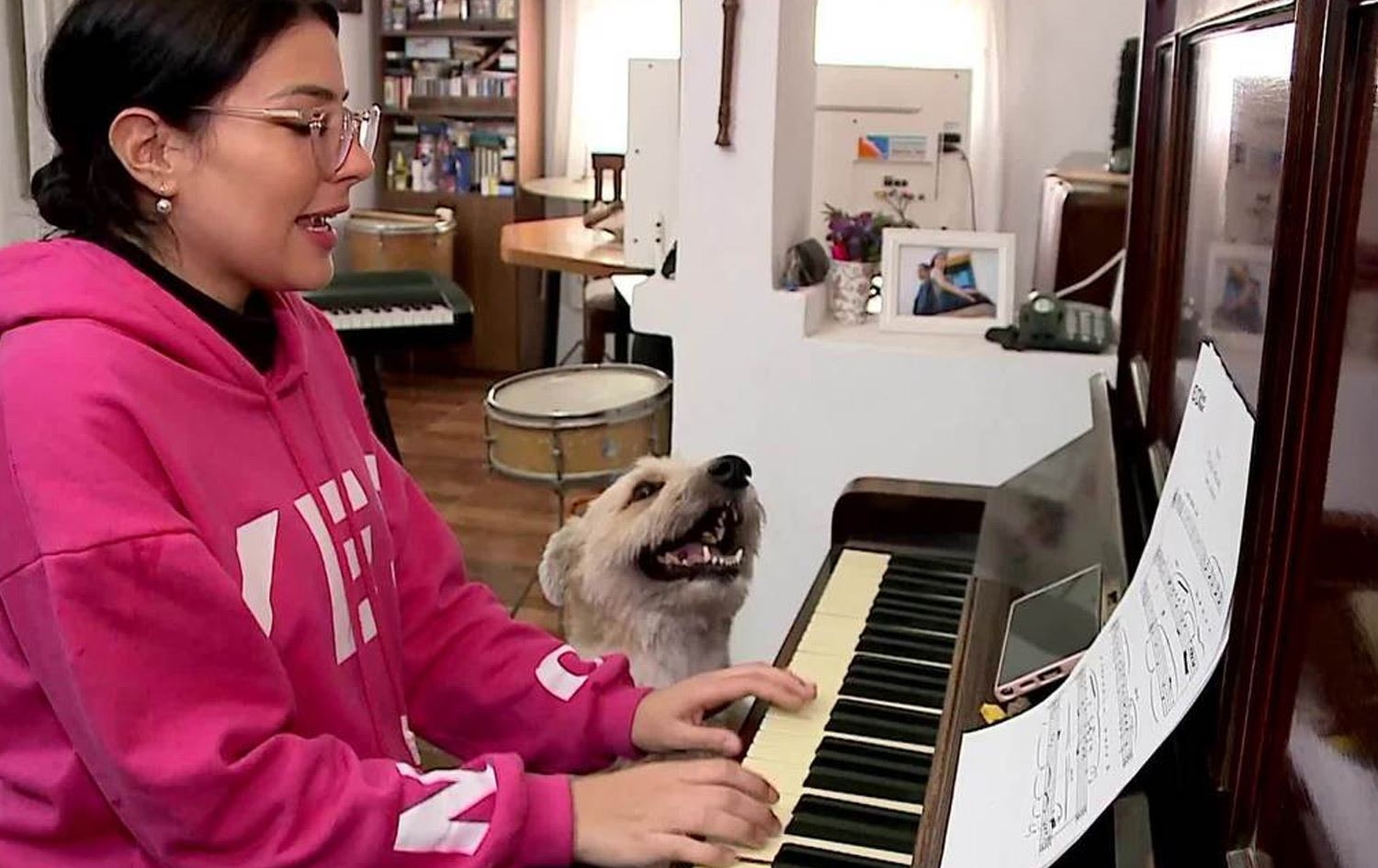 ئاناخی کاردۆسا، هونەرمەند دەڵێت، "کۆرسی [کۆرسی سەگەکەیە] لەگەڵ من لە بەردەم پیانۆکە دادەنیشێت. گۆرانی دادەهێنم یان گۆرانیی منداڵان دەڵێینەوە و ئەویش لەسەر ریتمی گۆرانییەکە لەگەڵم دەڵێتەوە."