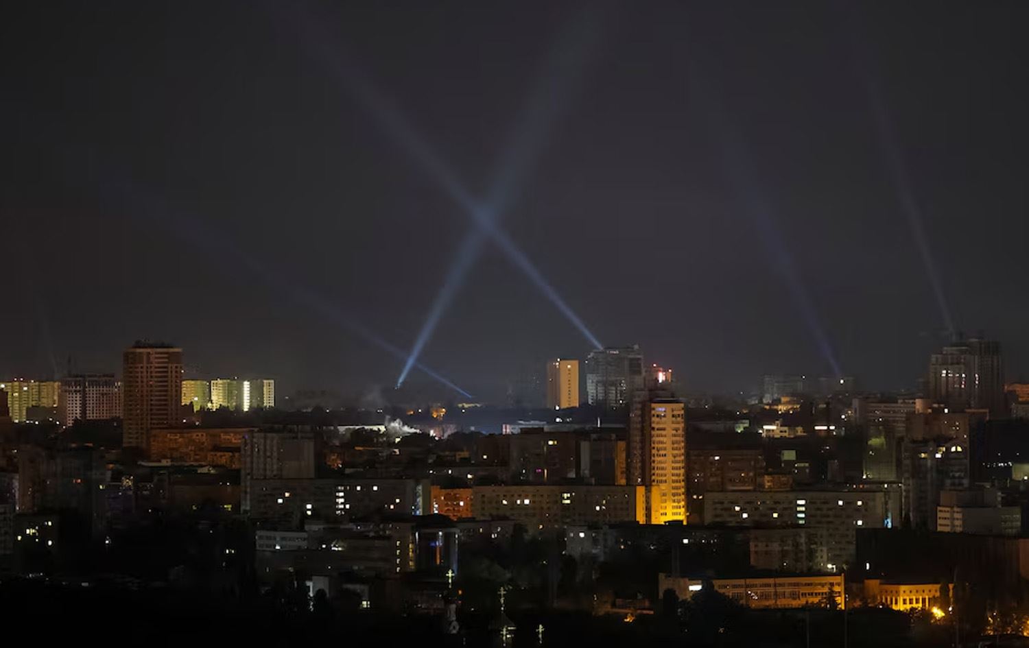 سوپای ئۆکراینا بە ئامێری تایبەت لە ئاسمانی کیێڤ بەدوای درۆنی رووسیدا دەگەڕێت لەکاتی هێرشەکەی رووسیا. وێنە: REUTERS/Gleb Garanich