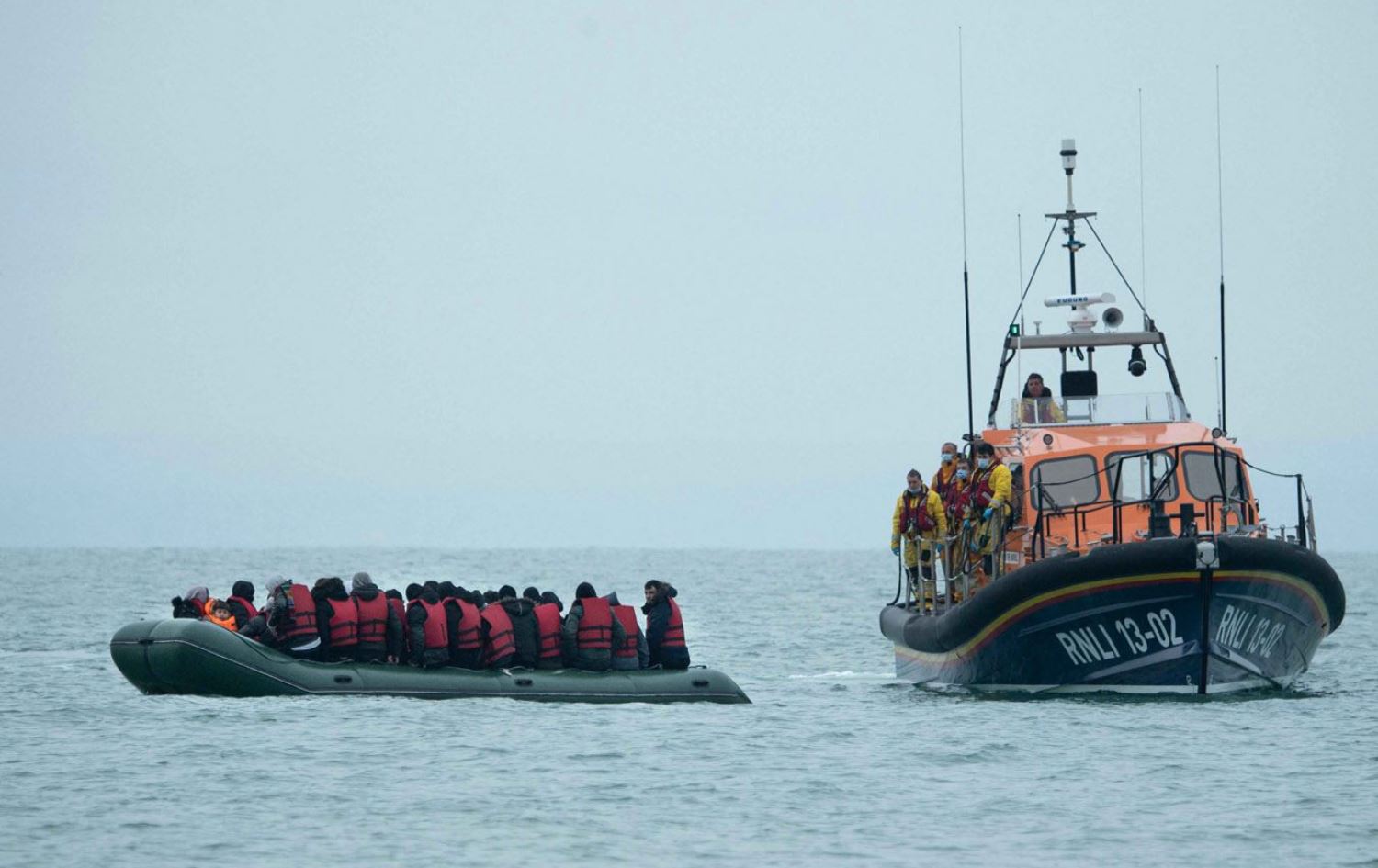 بەلەمێکی کۆچبەران لە نۆکەندی ئینگلیز لەلایەن بەلەمێکی هێزی دەریاوانیی بەریتانیاوە رێگری لێ دەکرێت