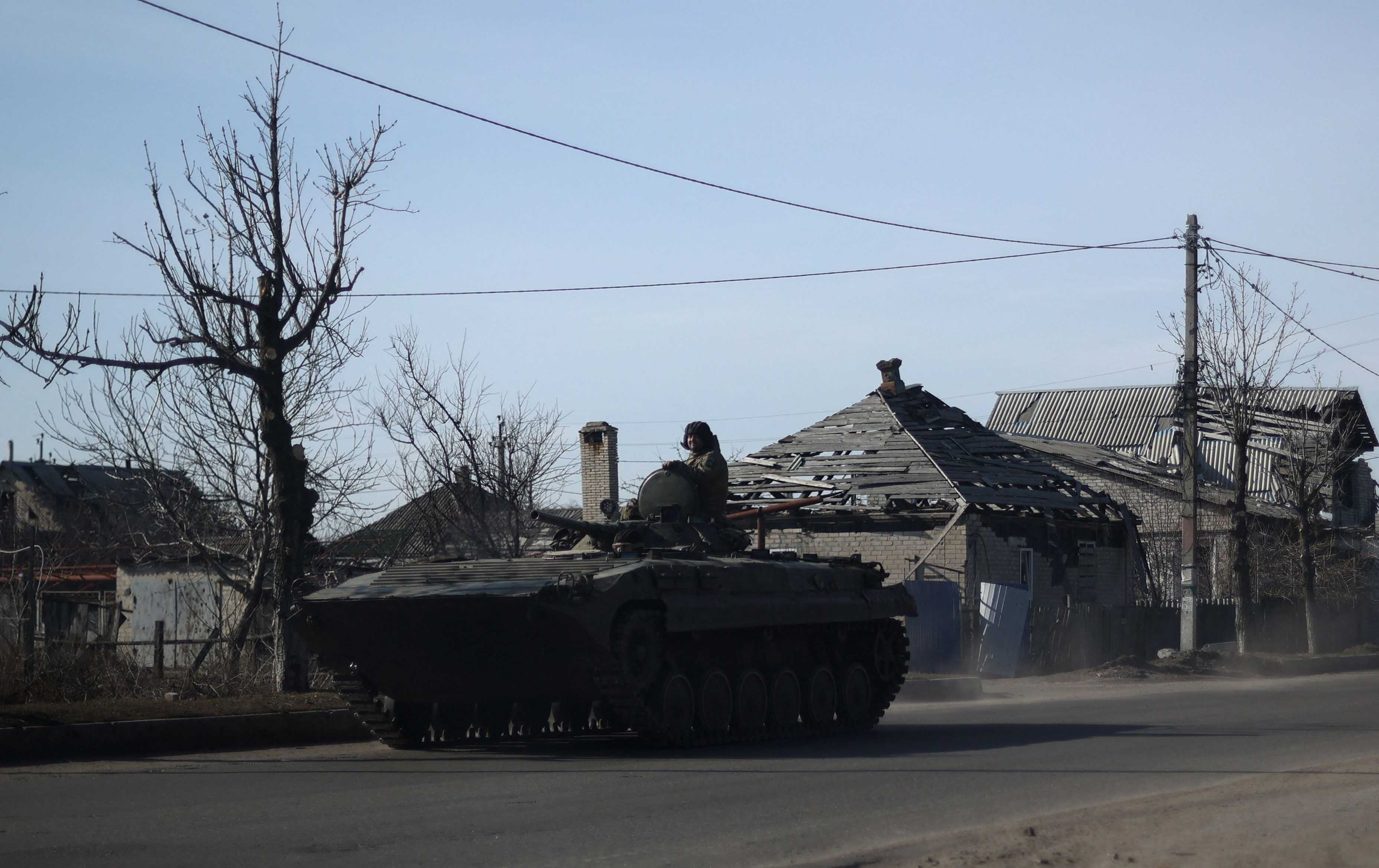 سەربازێکی ئۆکراینی لەنێو تانکێکدا لە ناوچەیەکی هەرێمی دۆنێتسک کە بەهۆی جەنگەوە بووەتە وێرانە. وێنە: Anatolii STEPANOV / AFP