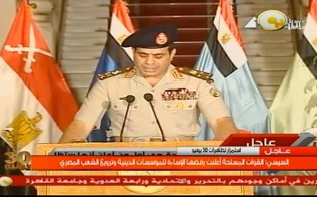 عەبدولفەتاح سیسی، وەزیری بەرگری و سەرۆكی هێزە چەكدارەكانی میسر لابردنی سەرۆكی هەڵبژێردراوی میسری راگەیاند و بڕیاریشدا حكومەتێكی كاتی بۆ هەڵبژاردن دابمەزرێت.
