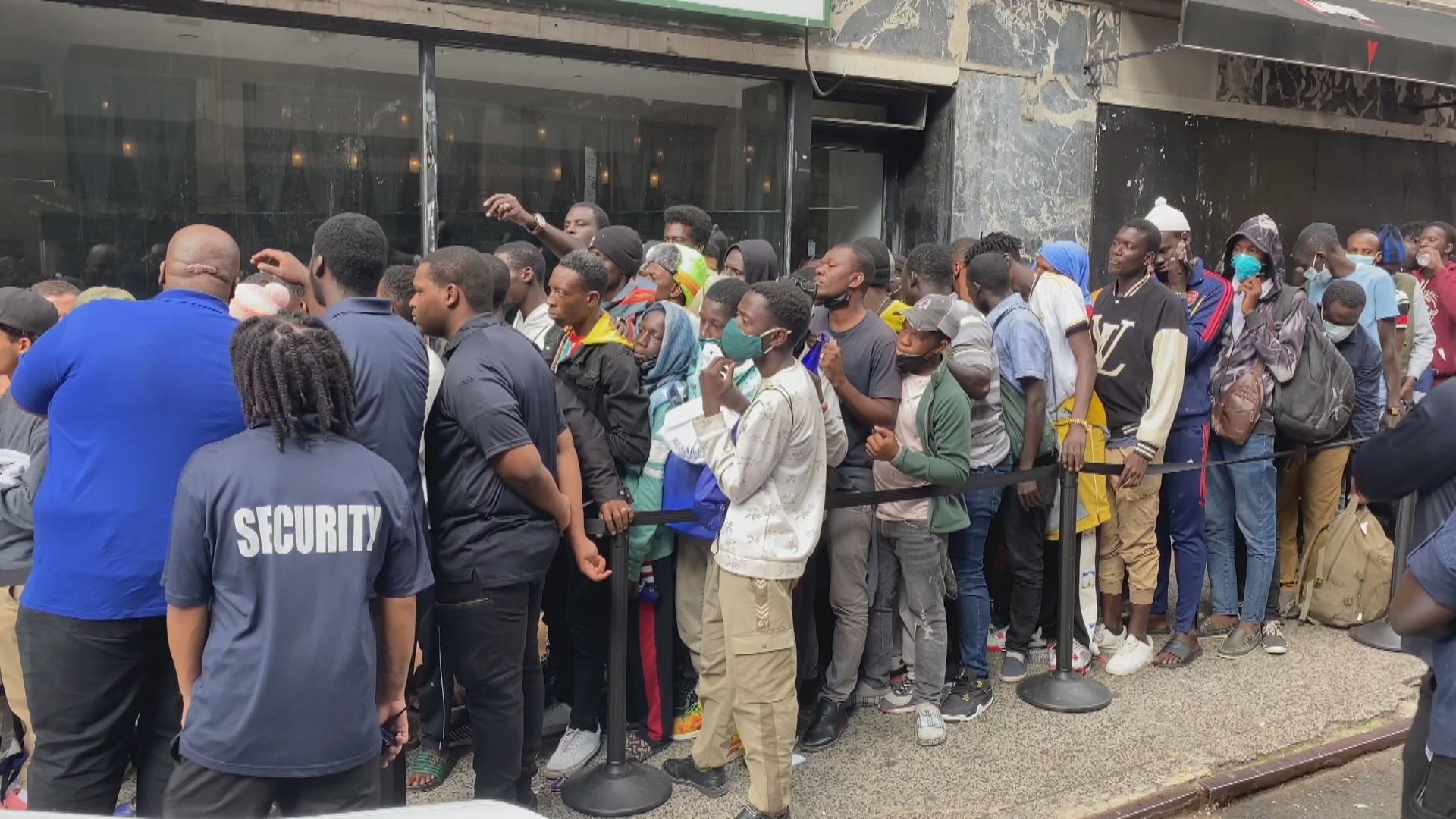 کۆچبەرانی ئەفریقی لە سەنتەری شاری نیویۆرکی ئەمریکا نۆرەیان گرتووە. ئەوان لەسەر شەقامەکانی ئەو شارە رۆژ دەکەنەوە و ئێستاش چاوەڕێن ببرێنە هۆتێلێکی کۆنی بەکارنەهاتوو.