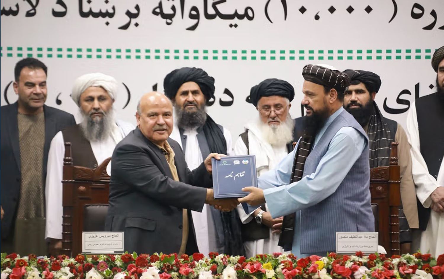 مەلا عەبدوللەتیف مەنسوور، وەزیری وزە و میروەیس عەزیزی، بەڕێوەبەری جێبەجێکاری گرووپی عەزیزی، گرێبەستەکەیان واژۆکرد، کە بەرپرسان وەک وەرچەرخانێکی گەورە لە کەرتی وزەی وڵاتەکەدا پێناسەی دەکەن.