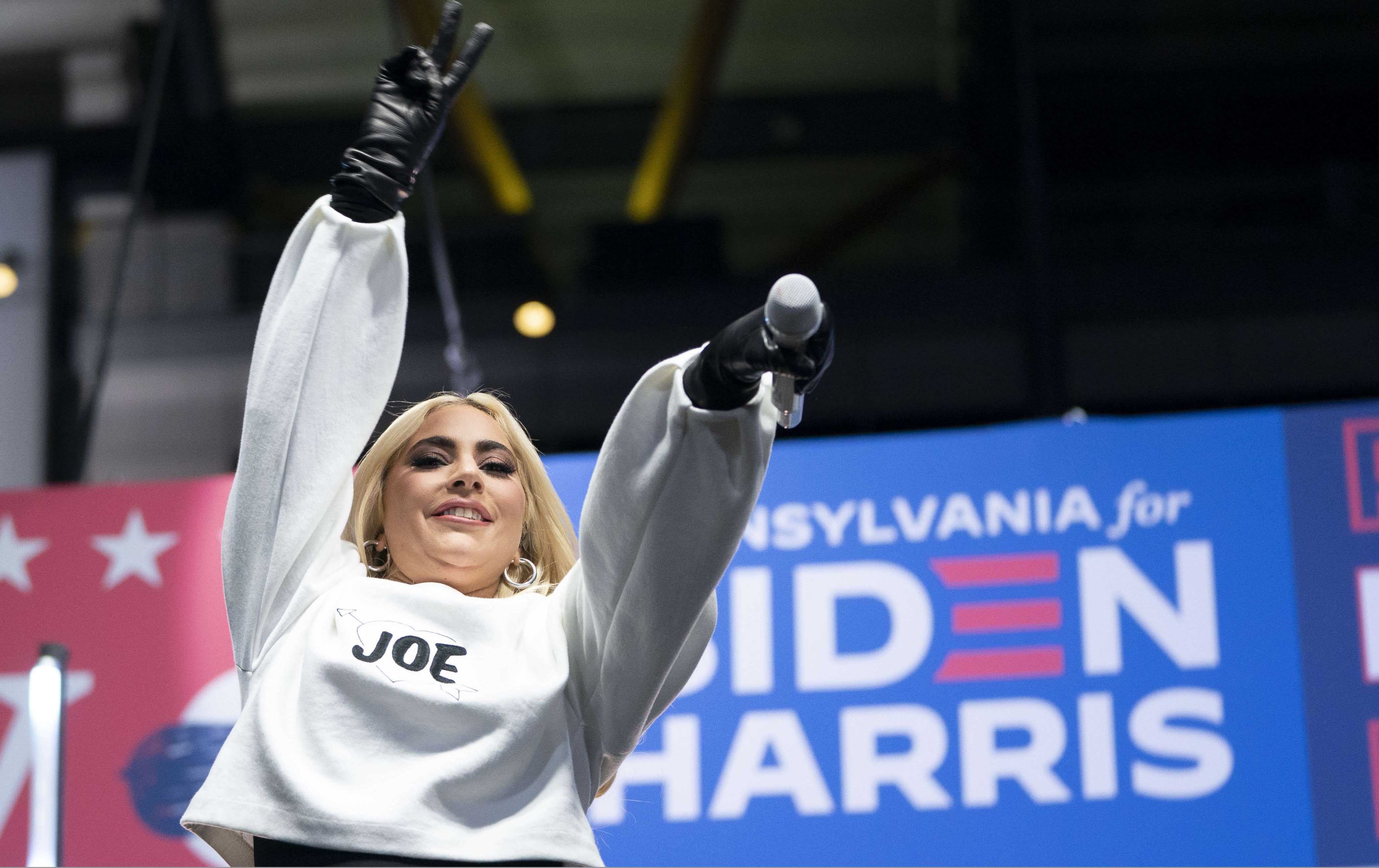 گاگا، پێشتر لە توویتەری خۆیدا بەشداریکردنی لە کۆبوونەوەیەکی هەڵبژاردنی بایدن لە پێنسلڤانیا راگەیاندبوو، وێنەیەکی خۆی و بەربژێرە دیموکراتەکەی بڵاوکردەوە و داوای لە ئەمریکییەکان کرد دەنگ بەو بدەن.