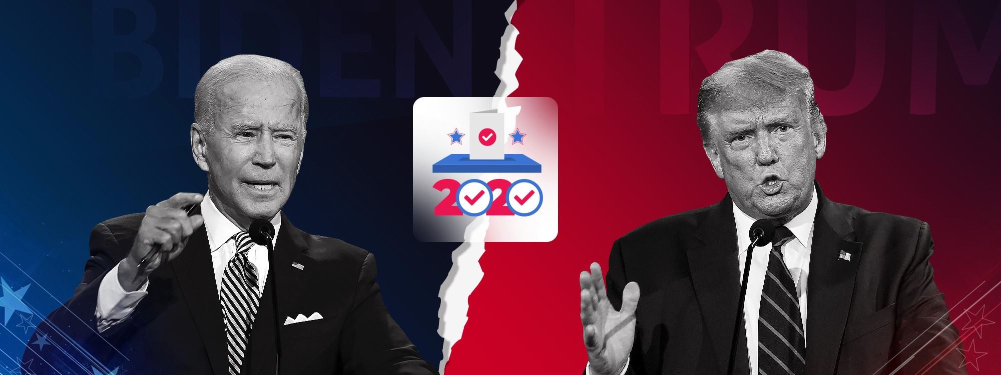 دۆناڵد ترەمپ، بەربژێری کۆمارییەکان و جۆ بایدن، بەربژێری دیموکراتەکان بۆ سەرۆکایەتیی ئەمریکا