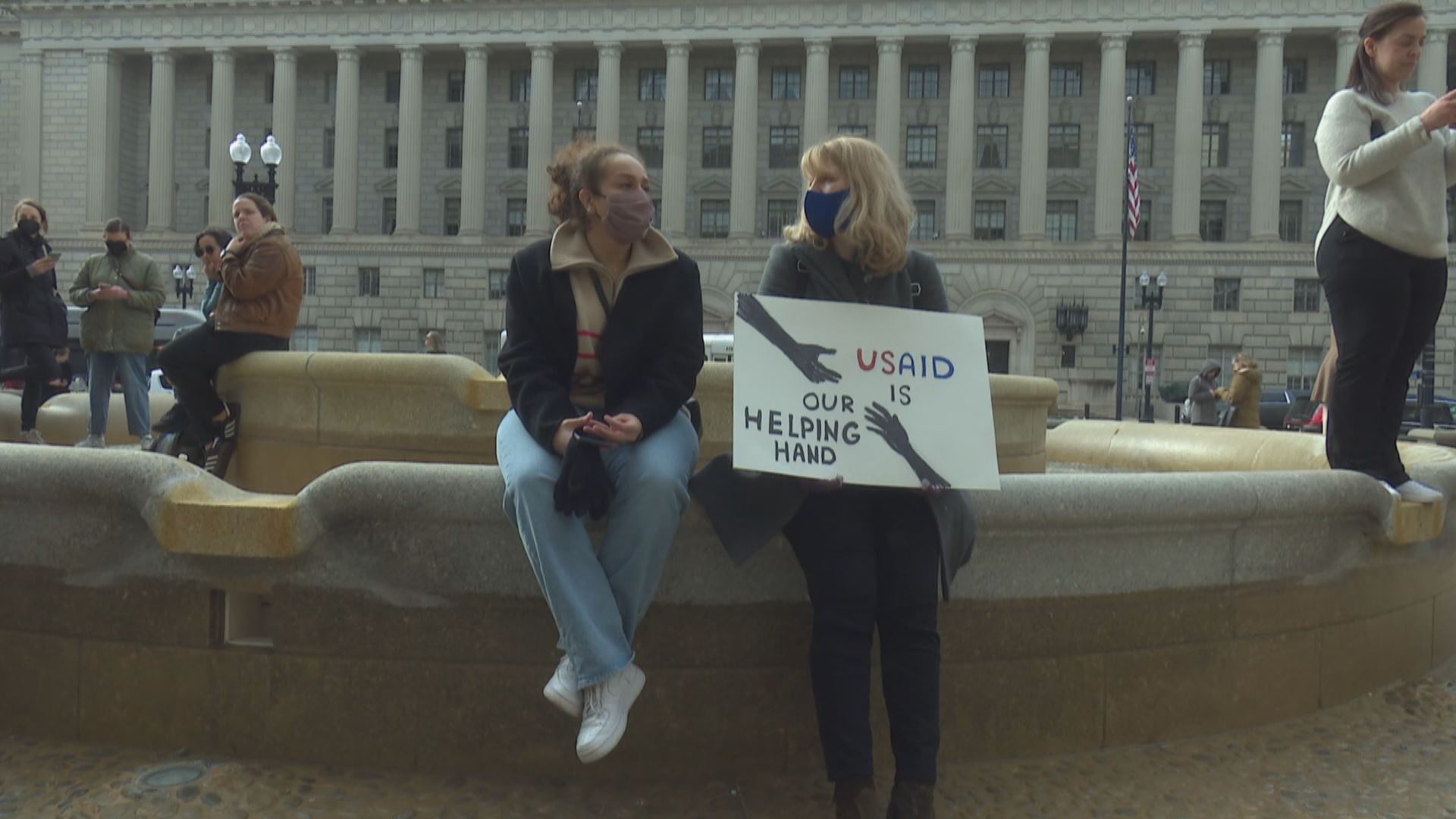 ئەوەی لە سەرەتای ئەم ڤیدیۆیە دەردەکەوێت، ژمارەیەکی زۆر لە کارمەند و ئەندامانی کۆنگرێسی ئەمریکان لەبەردەم باڵەخانەی ئاژانسی USAID کۆبوونەتەوە لە دژی داخستنی دەرگاکانی ئاژنسەکە لەدوای قسەیەکی بەرپرسی بەشی کارامەیی حکومەت لە ئیدارەی دۆناڵد ترەمپ کە دەڵێت، دۆناڵد ترەمپ رازییە بە داخستنی ئەو ئاژانسە.