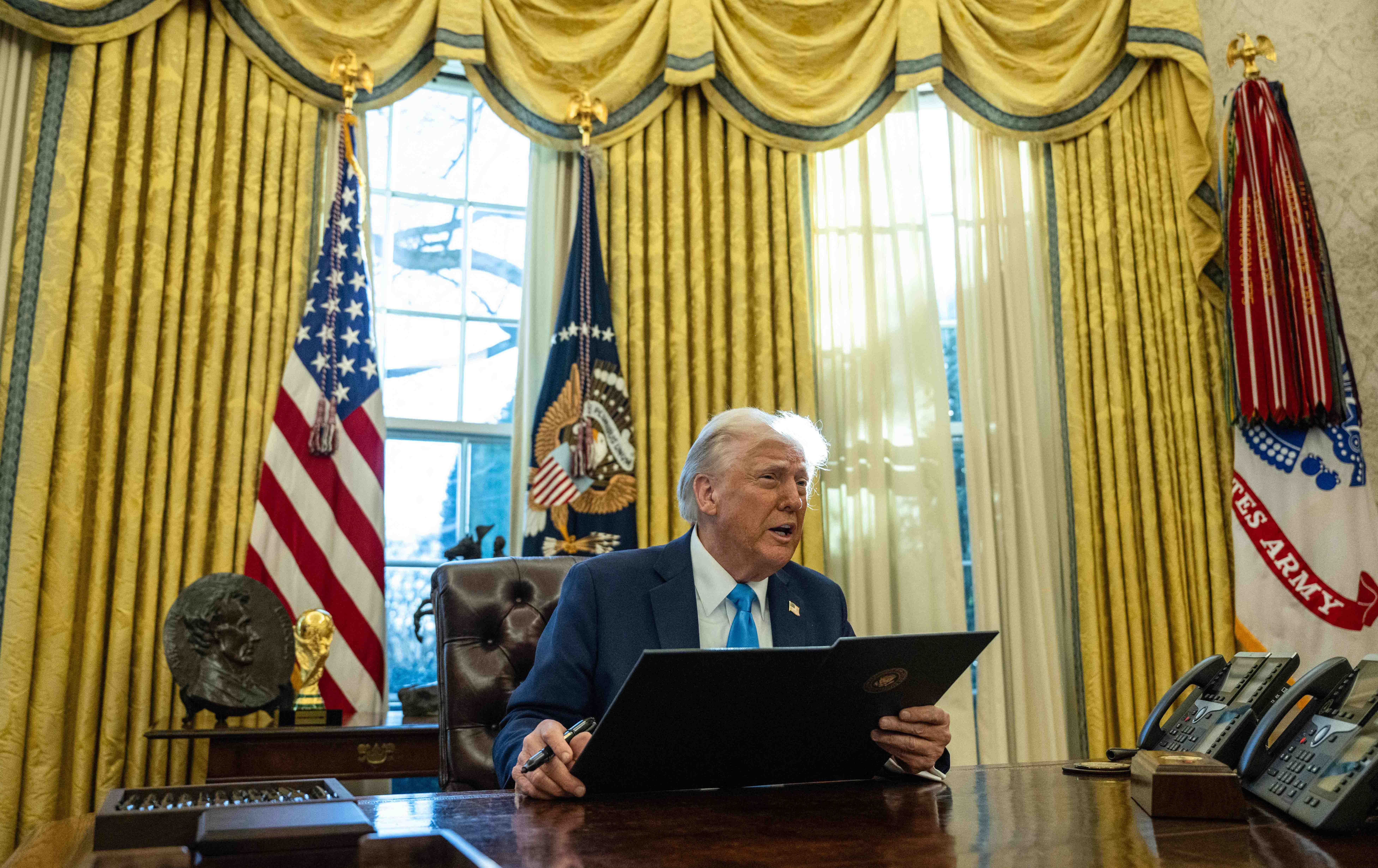 رۆژی دووشەممە، 4ـی شوباتی 2025، دۆناڵد ترەمپ، سەرۆکی ئەمریکا دوای ئەوەی ژمارەیەک فەرمانی سەرۆکایەتی واژۆ کرد، قسەی بۆ رۆژنامەڤانان کرد.