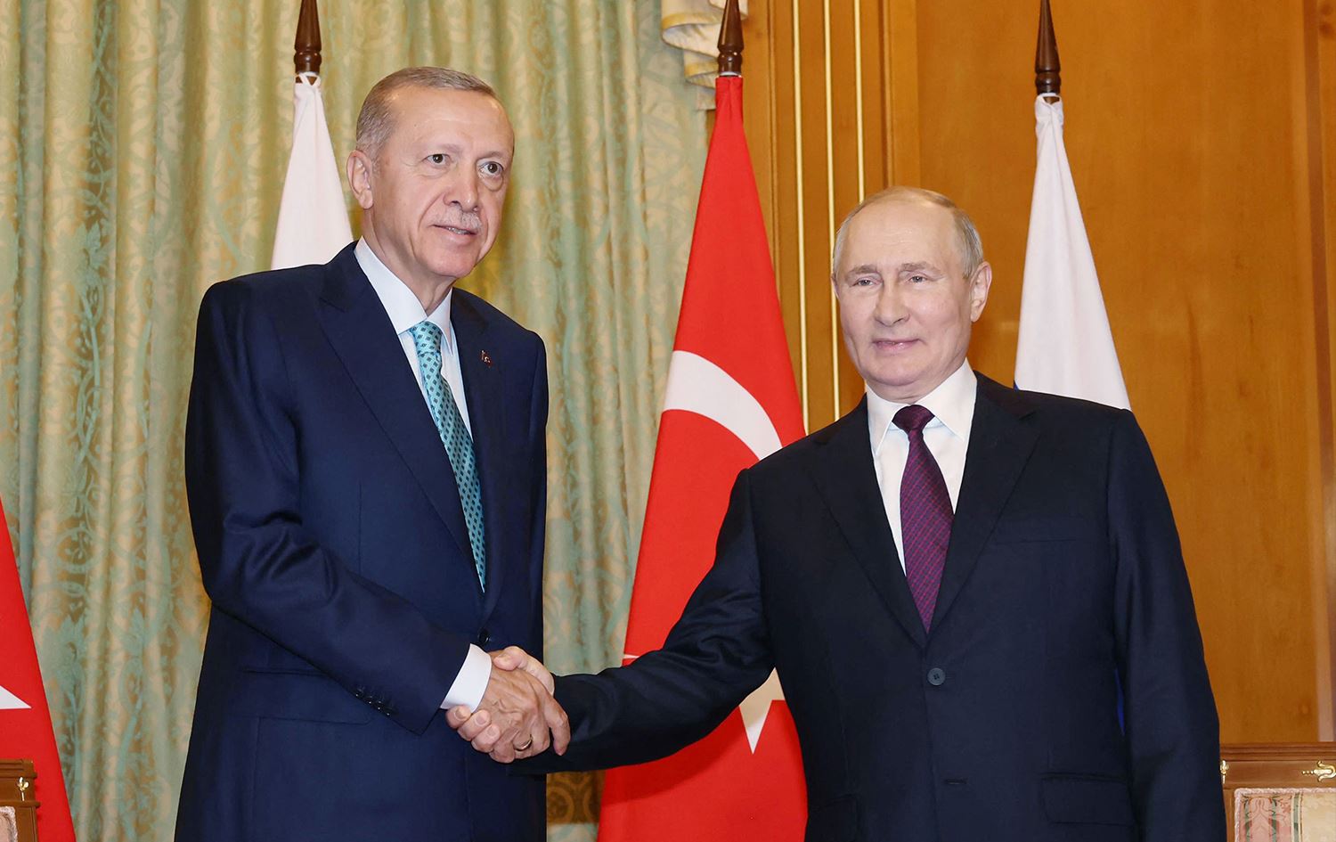 ئەردۆغان لە سەرەتای گوتەکانیدا سوپاسی پووتینی کرد و رایگەیاند، لە کارەساتەکانی بوومەلەرزە و سووتانی دارستانەکانی تورکیادا پشتیوانی و هاوئاهەنگیی کردووە. هەروەها لەبارەی پەیوەندییەکانی نێوان خۆی و پووتین گوتی: دوایینجار ساڵی رابردوو لە کۆنفرانسی هاوئاهەنگی و متمانەی ئاسیا لە ئاستانا چاویان بە یەک کەوتووە. لەو رۆژەوە تا ئەمڕۆ لەگەڵ بەڕێز پووتین هەمیشە پەیوەندیی تەلەفۆنیی دیپلۆماسیمان هەبووە و گفتوگۆمان بەردەوامبووە. ئەمڕۆ لە کۆبوونەوەی دوو بە دوو و کۆبوونەوەی شاندەکانماندا، رۆژەڤمان تاوتوێکرد. هەڵسەنگاندنمان بۆ ئەو هەنگاوانە کرد کە دەکرێت لە رەهەندەکانی بازرگانی، وزە، کشتوکاڵ، گەشتیاری، ئابووری و دارایی و زۆر بابەتی دیکە لە نێوانمان بنرێن. قەبارەی بازرگانیی نێوانمان ساڵی رابردوو نزیکەی 69 ملیار دۆلار بوو. ئێستا بە هەنگاوی مسۆگەرەوە بەرەو ئامانجەکەمان دەڕۆین کە 100 ملیار دۆلارە. ئەمساڵ وەرزێکی باشی گەشتیاری تێدەپەڕێنین. لە ساڵی 2022 پێشوازیمان لە 5 ملیۆن و 230 هەزار هاووڵاتیی رووسیا کرد. لە حەوت یەکەمین مانگی ئەمساڵدا، 3.5 ملیۆن گەشتیاری رووسی هاتوونەتە وڵاتەکەمان. لەو باوەڕەدام ئەم ژمارەیە لە داهاتوودا زیاتریش دەبێت.