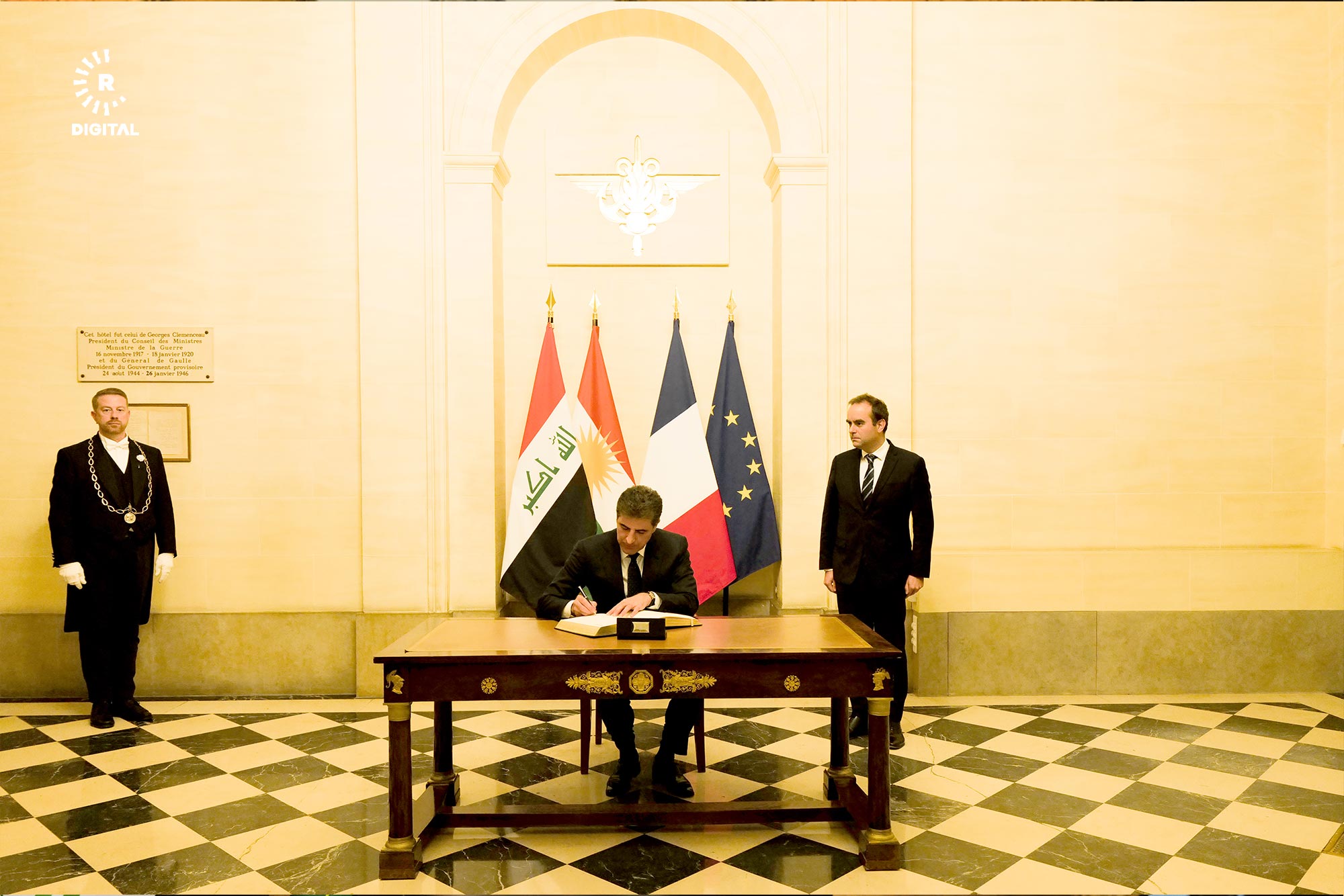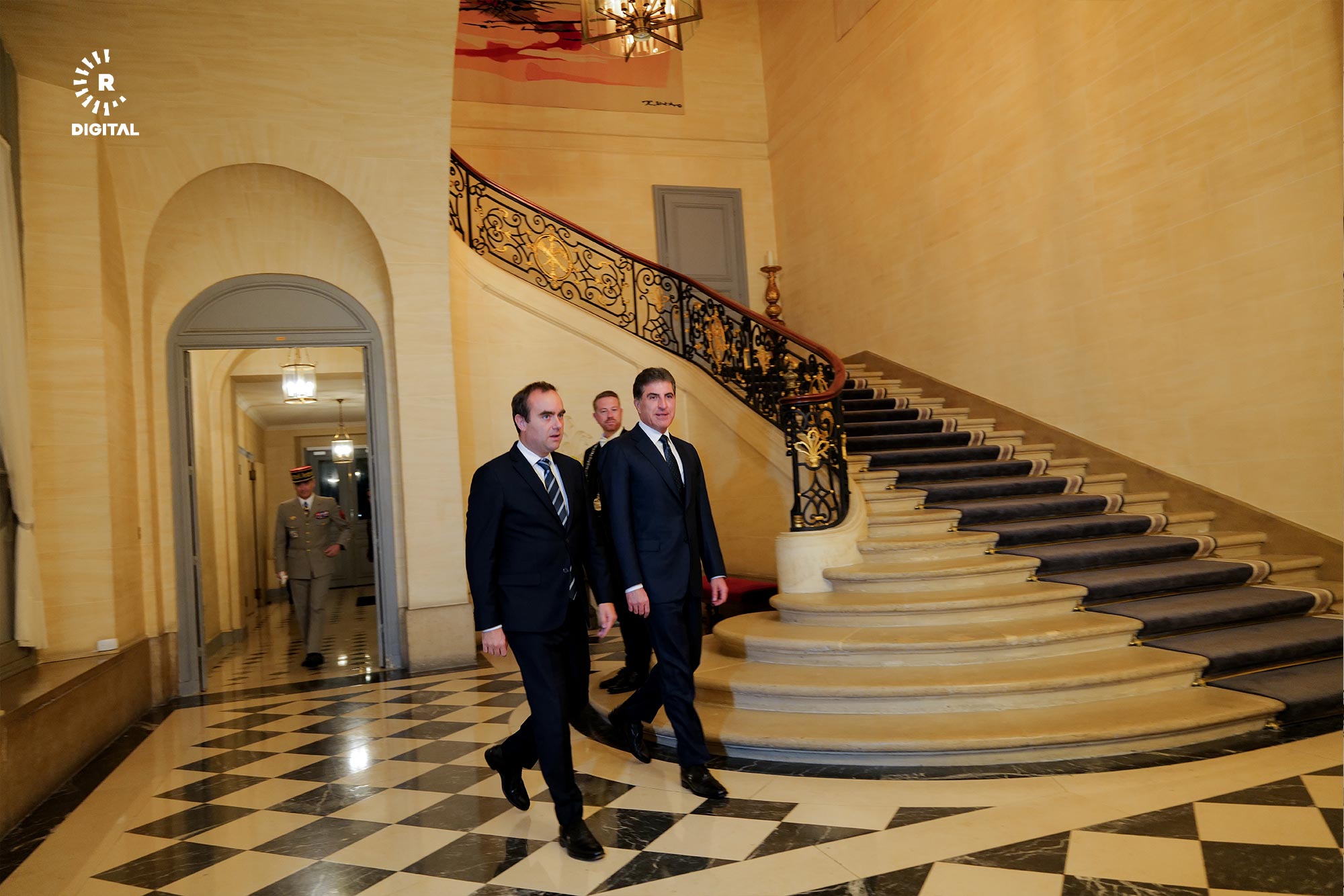 دوای کۆبوونەوەی لەگەڵ سەرۆکی فەرەنسا، نێچیرڤان بارزانی سەردانی وەزارەتی بەرگریی ئەو وڵاتەی کرد؛ لەگەڵ وەزیری بەرگری و سوپاسالاری فەرەنسا کۆبووەوە و له تۆمارى يادگاريى وهزارهتەکەدا پهيامێكى يادهوهرى تۆمار كرد، تێیدا "سوپاسى پشتگيرى و هاريكاريى فهرهنسا بۆ عێراق و ههرێمى كوردستان"ـی كرد.