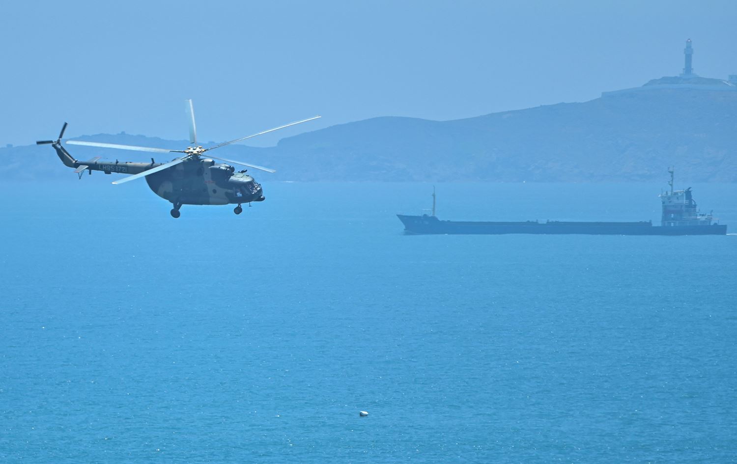 هێلیکۆپتەرێکی هێزی دەریایی چین بە دیار دوورگەیەکی نزیک لە تایوان دەسووڕێتەوە. وێنەکە بۆ روونکردنەوە لەسەر هەواڵەکە دانراوە: AFP