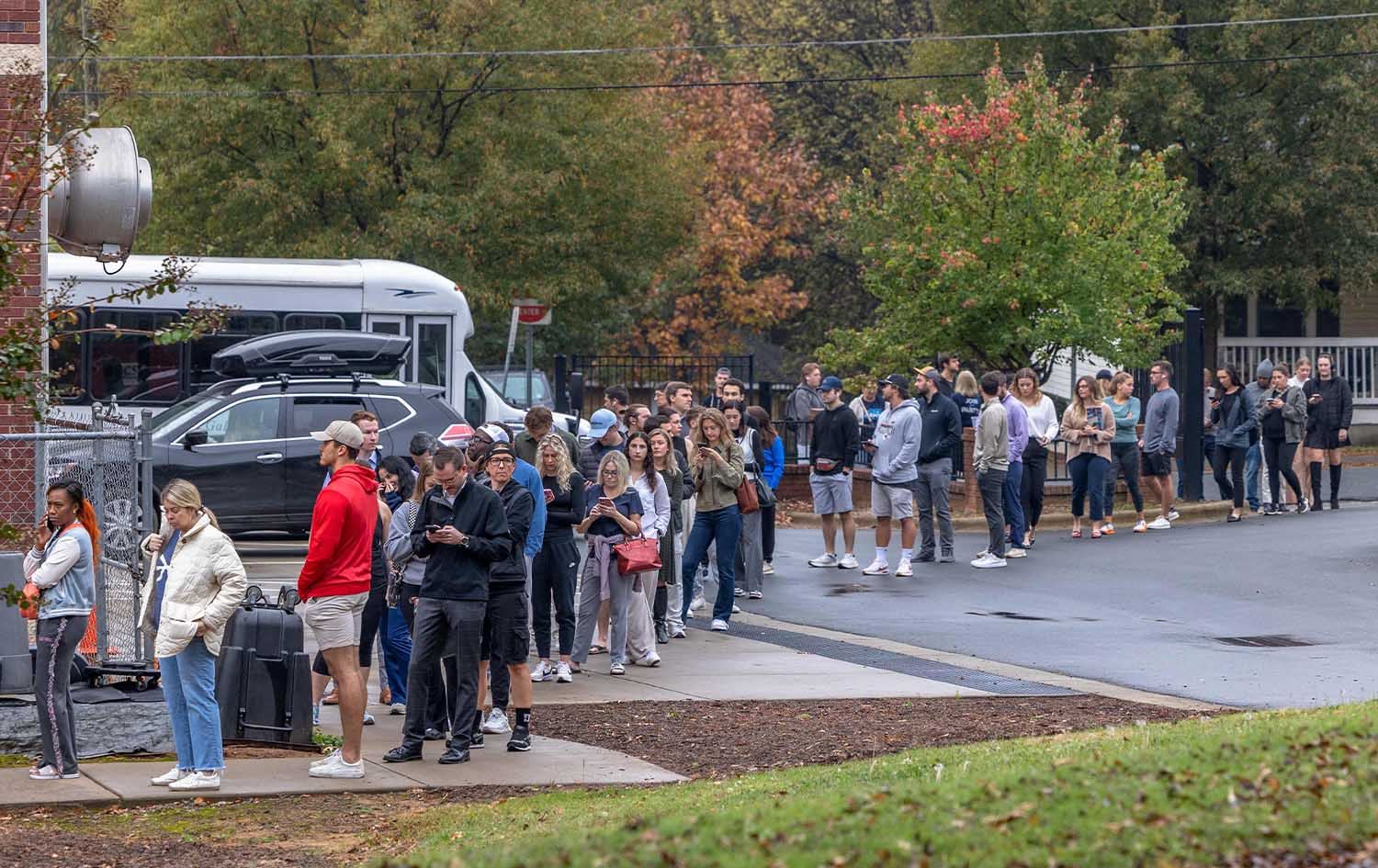 ژمارەیەک لە دەنگدەرانی ئەمریکی لەبەردەم بنکەیەکی دەنگدان لە ویلایەتی کارۆلینای باکوور ریزیان بەستووە بۆئەوەی دەنگ بدەن. وێنە: Grant BALDWIN / AFP