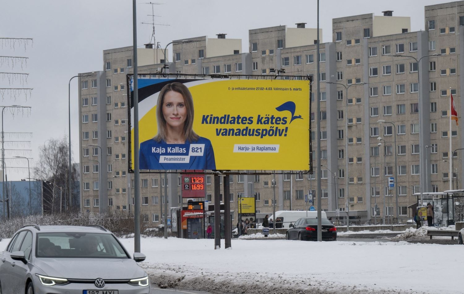 پۆستەرێکی هەڵبژاردن کە وێنەی سەرۆکوەزیرانی ئەو وڵاتەی لەسەرە لە تاڵین، وێنە: RAIGO PAJULA / AFP