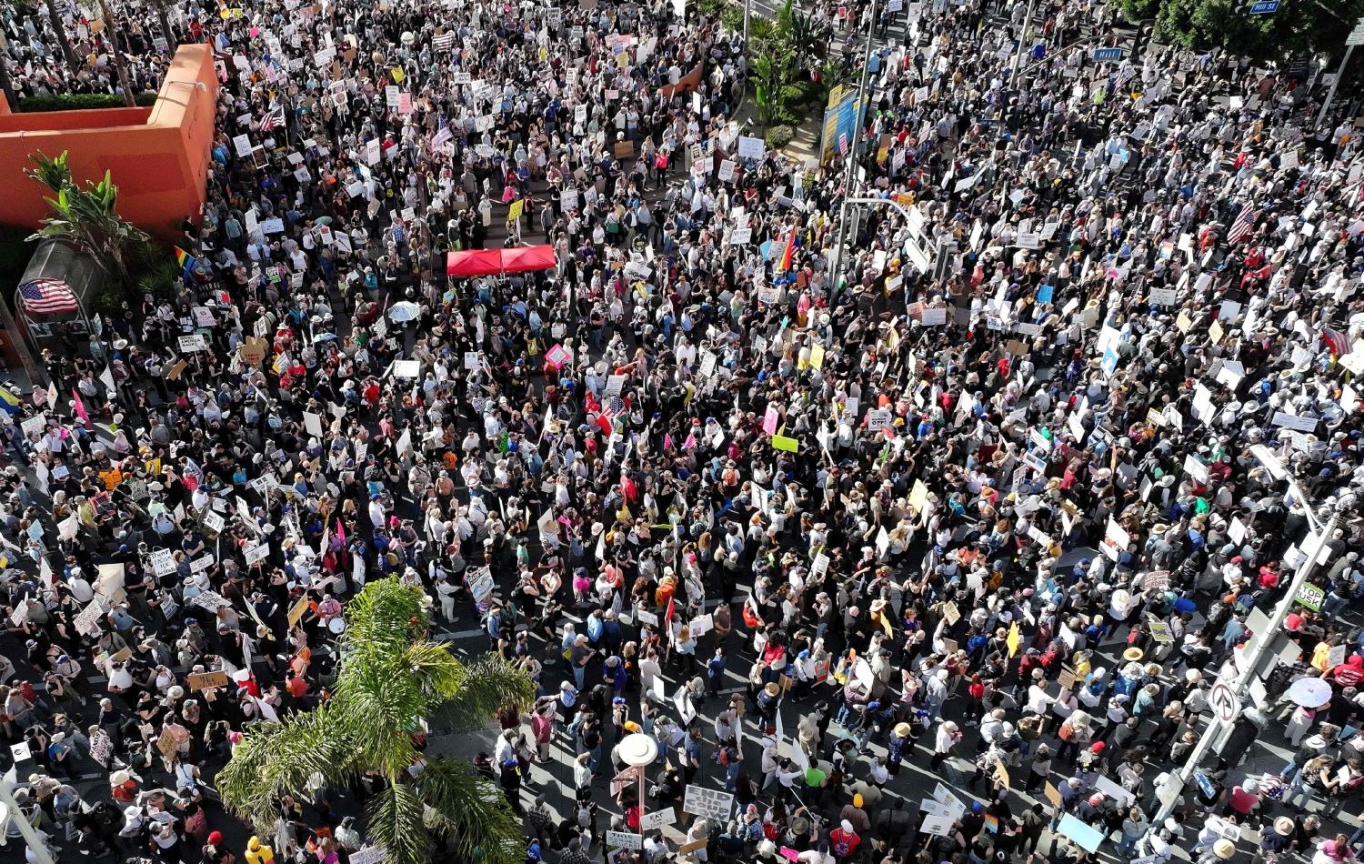 خۆپیشاندانی "دەستهەڵگرن" لە هەزار و 200 شوێنی جیاوازی هەر 50 ویلایەتەکەی ئەمریکا بەڕێوەچوو. سەدان هەزار کەس لە بۆستن، شیکاگۆ، لۆس ئەنجڵس، نیویۆرک و واشنتن رژانە سەر شەقامەکان.