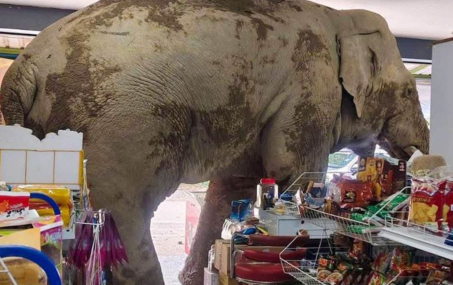 هەرچەندە خەڵکی تایلەند رۆژانە فیل لە شەقامەکان دەبینن، بەڵام کەم رێکدەکەوێت فیل بچێتە نێو فرۆشگەکانەوە.