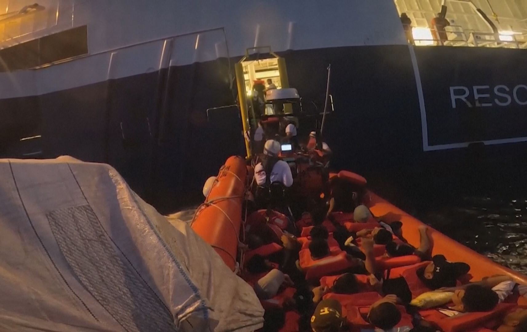 سەرەتای ڤیدیۆکە ساتی رزگارکردنی کۆچبەرانی نێو بەلەمێکە لە نزیک کەناراوەکانی دوورگەی لامپەدوسا لە باشووری ئیتاڵیا، لەلایەن هێزی دەریایی ئەو وڵاتەوە.