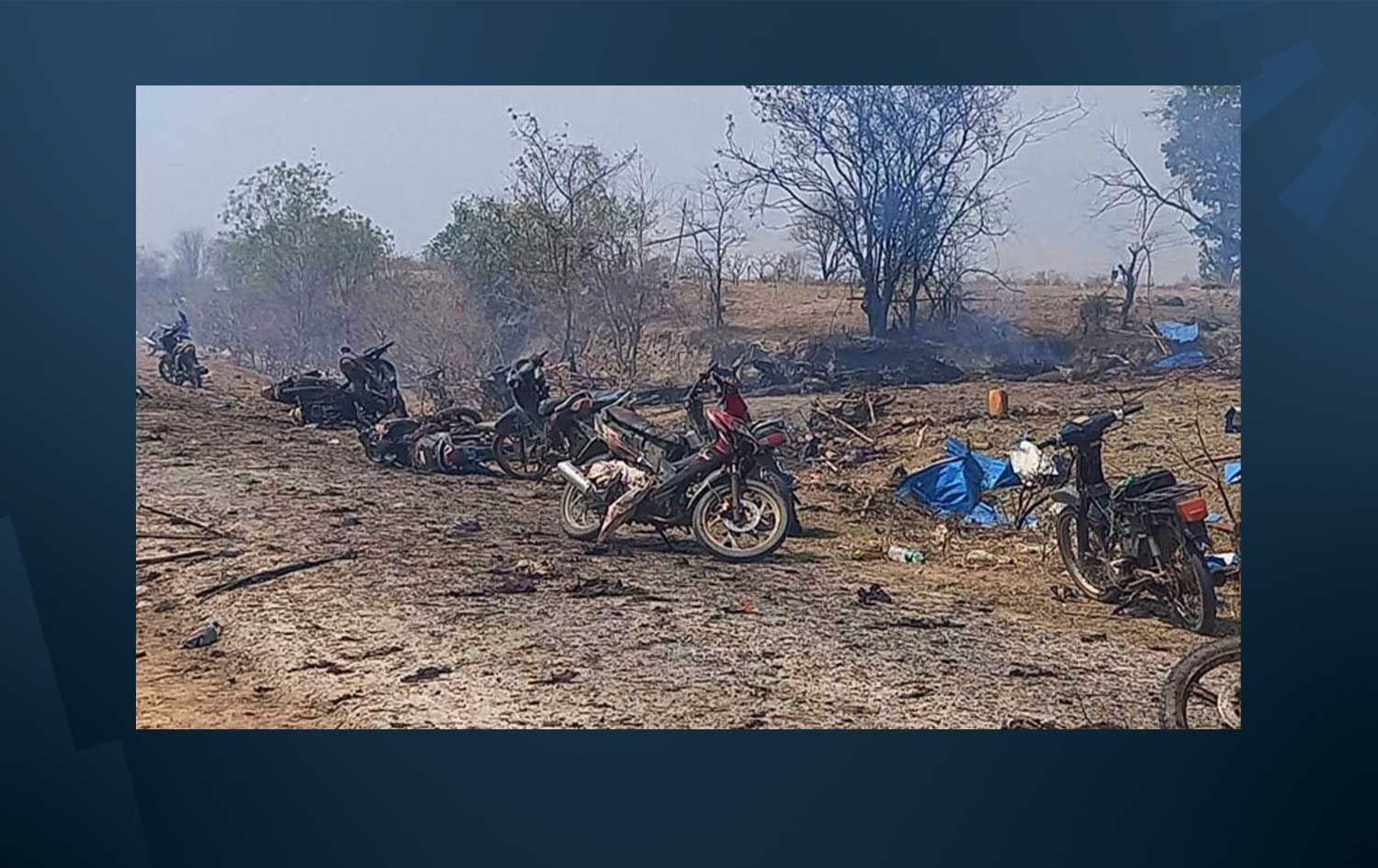 بە گوێرەی ئاژانسی فرانس پرێسی فەرەنسی، سوپای میانمار شەش بۆمبی لە گوندەکە بەرداوەتەوە کە بەر دوو کەنیسە و ژمارەیەک خانوو کەوتوون. هەروەها، زۆرینەی ئەوانەی کوژراون لەنێو دوو کەنیسەکە دابوون و زۆرینەشیان ژن و منداڵ بوون.