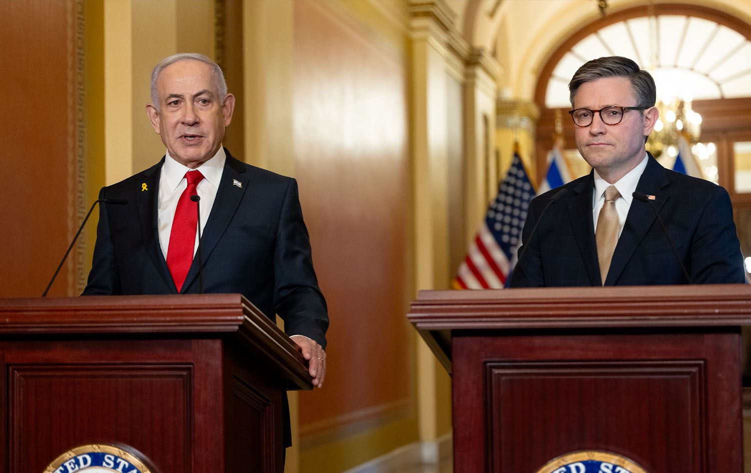 رۆژی هەینی 07-02-2025 مایک جۆنسن، سەرۆکی ئەنجوومەنی نوێنەرانی ئەمریکا لە کۆنگرێسی وڵاتەکەی پێشوازیی لە بنیامین نەتەنیاهوو، سەرۆکوەزیرانی ئیسرائیل کرد.
