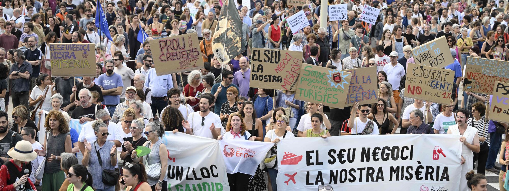 رۆژی شەممە 06-07-2024 بە درووشمی (بەسە! با سنوور بۆ گەشتیاری دابنرێت) نزیکەی دوو هەزار و 800 کەس رژانە سەر شەقامەکانی شاری بارسێلۆنا.