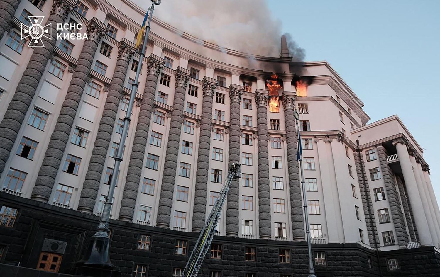 یولیا سڤیریدینکۆ، سەرۆکوەزیرانی ئۆکراینا گوتی، باڵەخانەی ئەنجوومەنی وەزیران یەکێک لەو شوێنانە بوو بۆردوومانکرا و بەو هۆیەوە نهۆمەکانی سەرەوەی زیانی بەرکەوت.