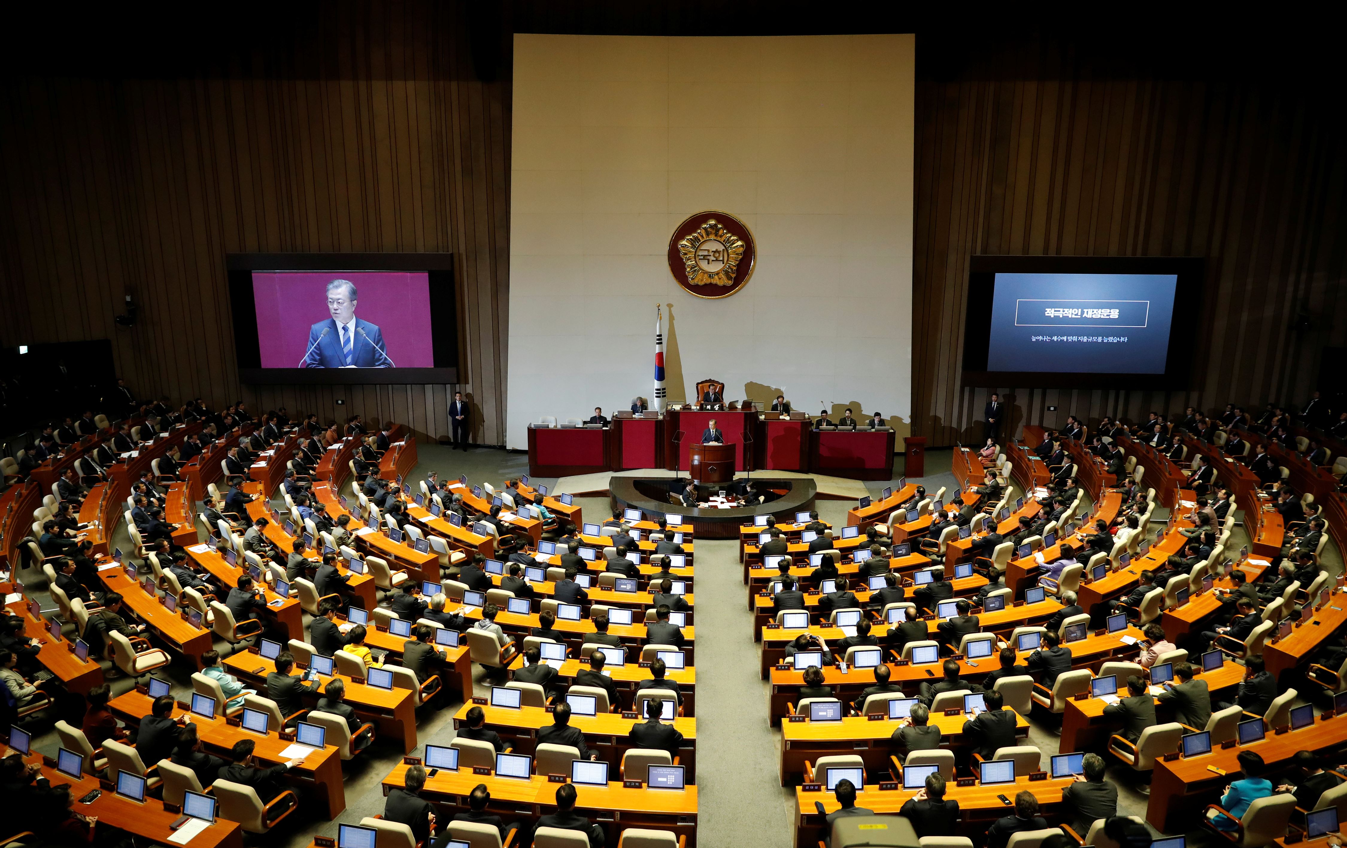 دانیشتنی پەرلەمانی کۆریای باشوور بۆ دەنگدان لەسەر سەندنەوەی متمانە لە سەرۆکی وڵاتەکە. وێنە: Reuters