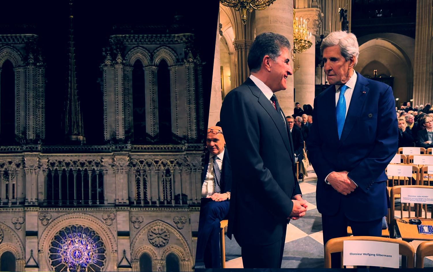 نێچیرڤان بارزانی، سەرۆکی هەرێمی کوردستان لەنێو کاتێدرالی نۆتردامە لە پاریس و کەمێکی دیکە رێوڕەسمی کردنەوەی دەستپێدەکات