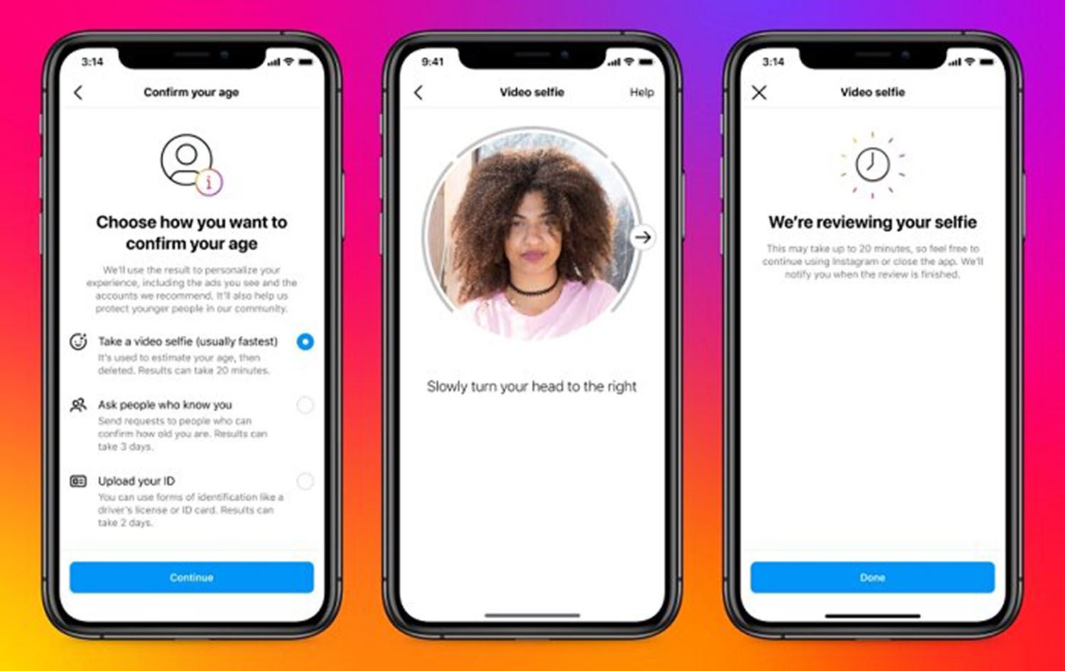 ڕێکارەکانی ئینستاگرام لە مانگی 6 ـی 2022 لە ئەمریکا دەستیان پێکرد. بۆ پشتڕاستکردنەوەی تەمەنی کەسەکان لە هەژمارەکانیان، بەکارهێنەران سێ بژاردەیان دەبێت: