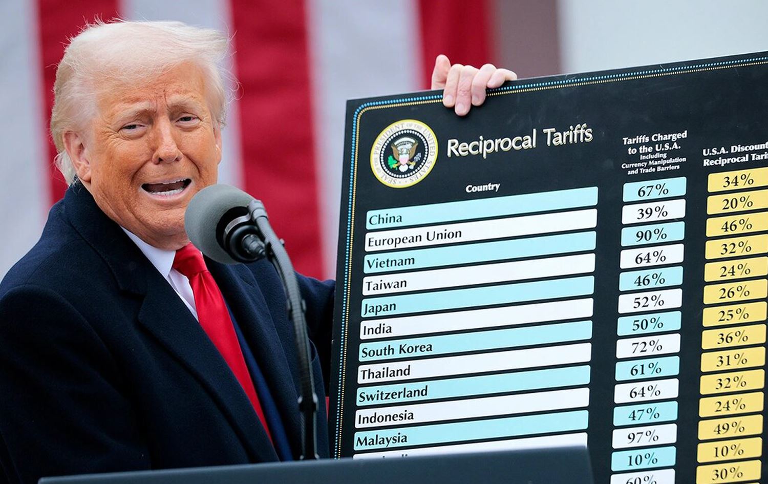 کەمترین رێژەی ئەو پێناسە گومرگییانەی کە ئەمریکا بەسەر وڵاتان سەپاندوویەتی 10٪ و زۆرترینیشیان 49٪یە.