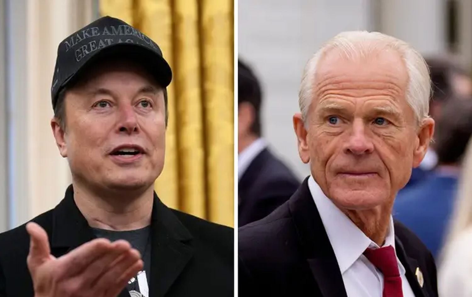 پیتەر ناڤارۆ، گەورە راوێژکاری بواری بازرگانیی ترەمپ (دەستە راست) و ئیلۆن مەسک، بەرپرسی فەرمانگەی کارامەیی حکومەتی ئەمریکا