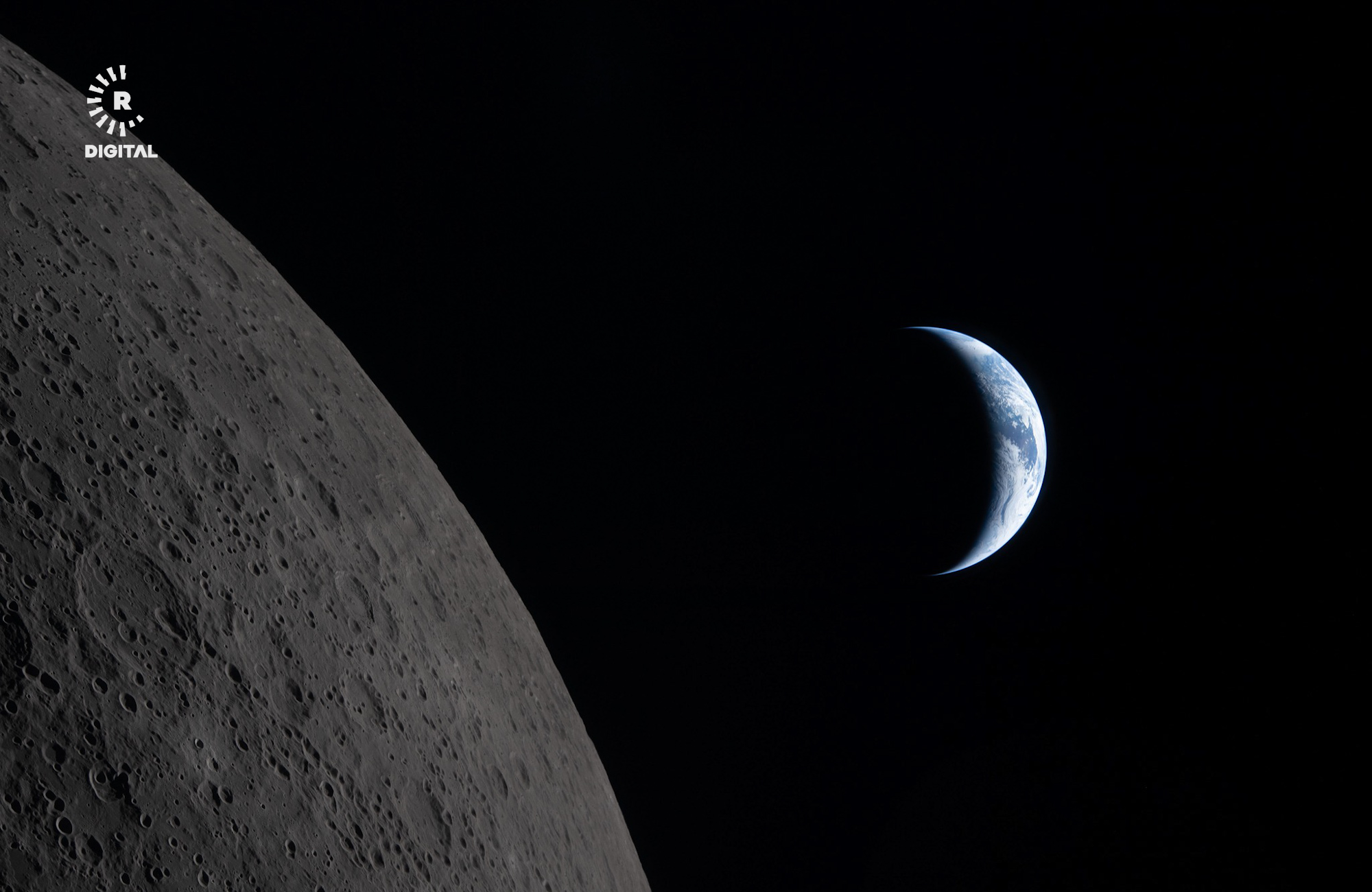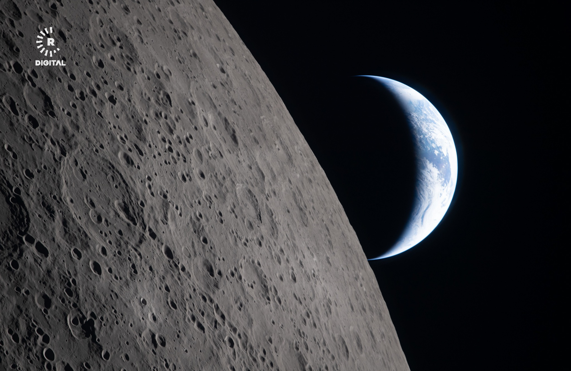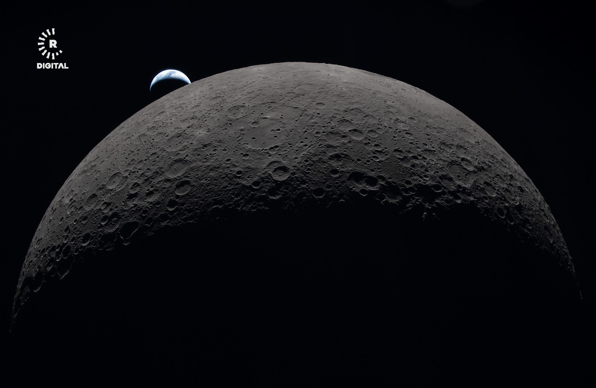 وێنەکان دیوە تاریکەکەی مانگ پێشان دەدەن و زەوی لە دوورەوە بە بچووکی دەردەکەوێت.