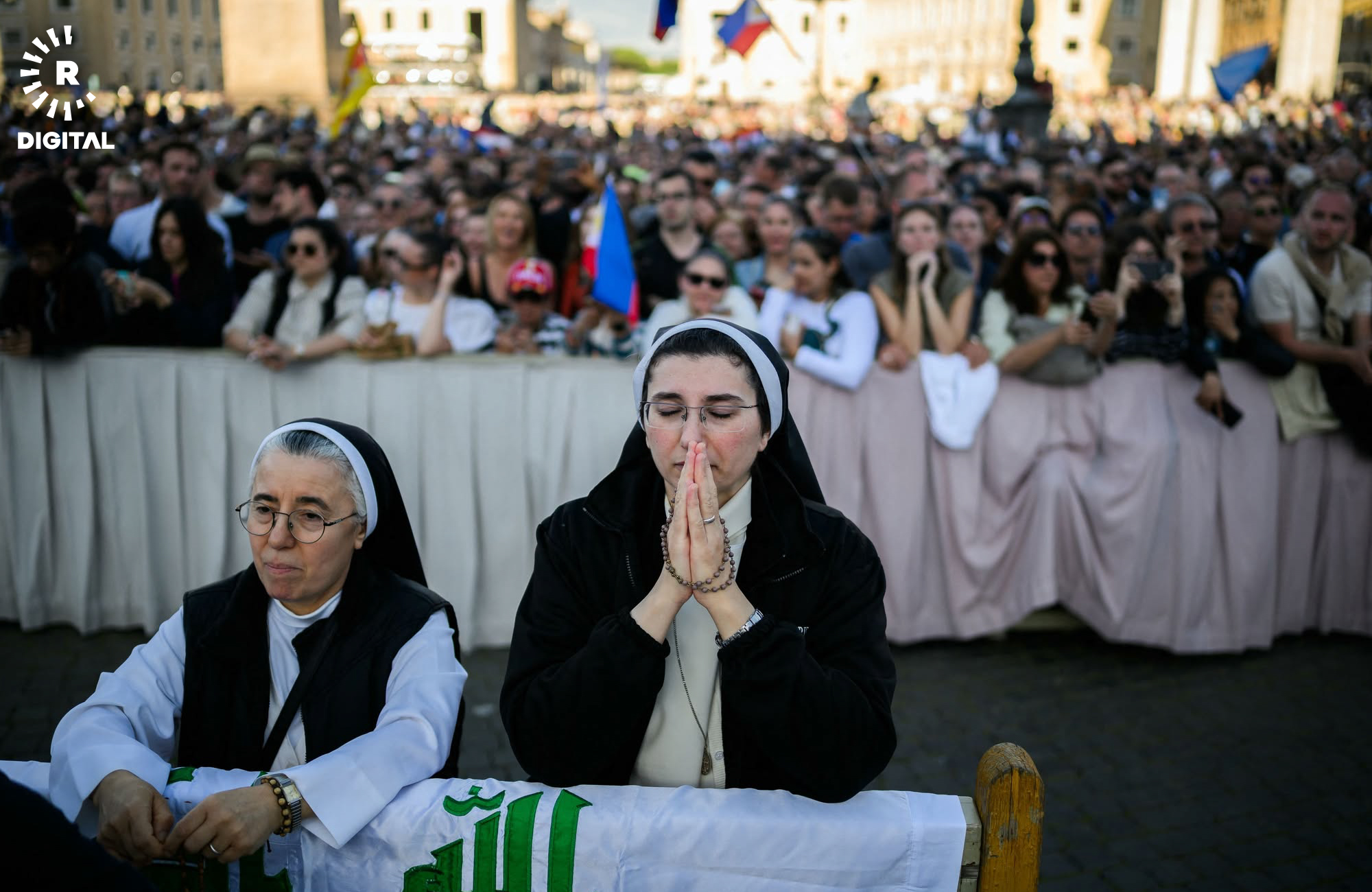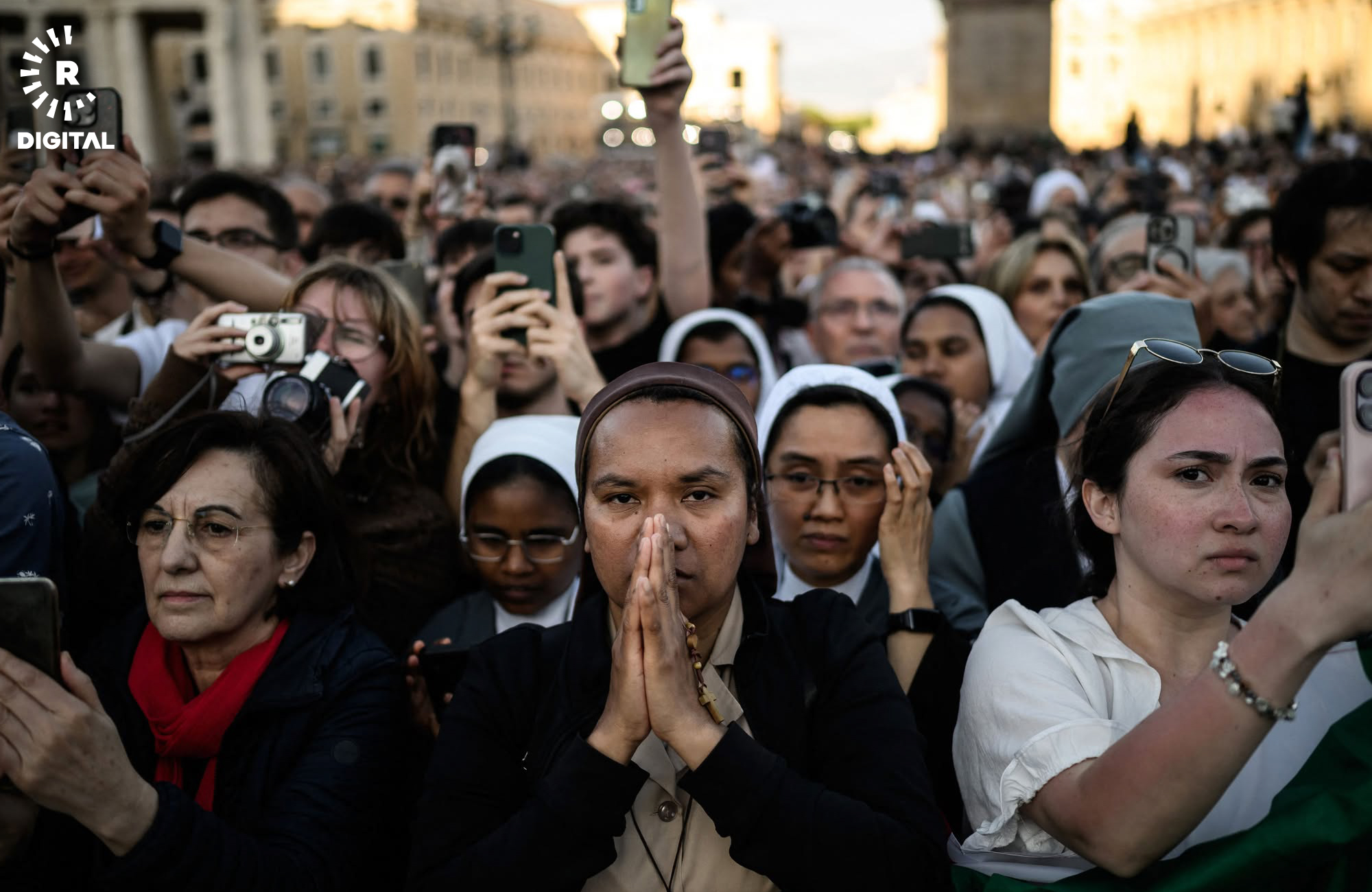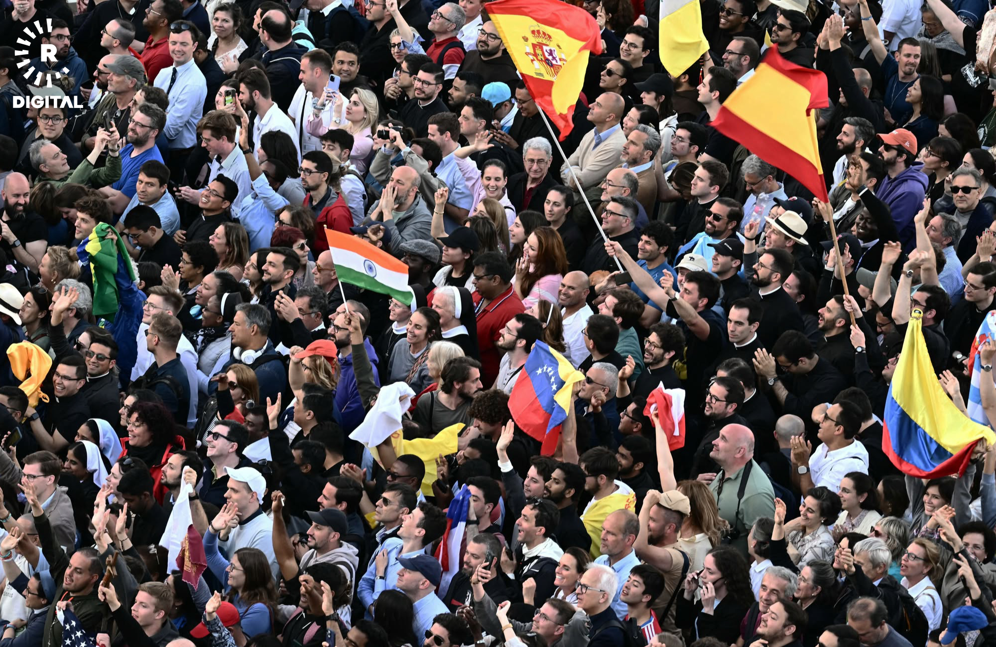 گۆڕەپانی سانت پیتەر، ئەو شوێنە بوو کە هەزاران کریستیانی کاسۆلیکی جیهان بە منداڵ، گەنج و پیر بە پەرۆشەوە چاوەڕوانی راگەیاندنی ناوی پاپای نوێ بوون. هەندێکیان چەتریان هەڵدابوو و هەندێکیشیان لەسەر زەوی پاڵکەوتبوون.