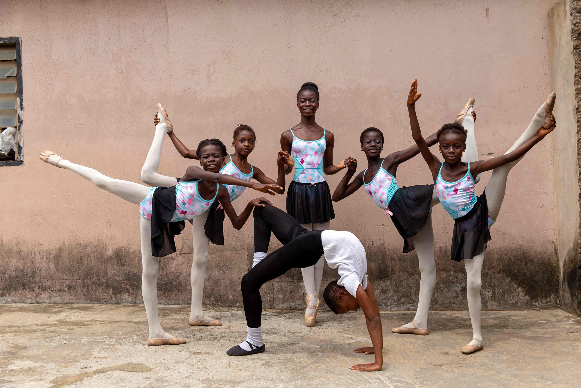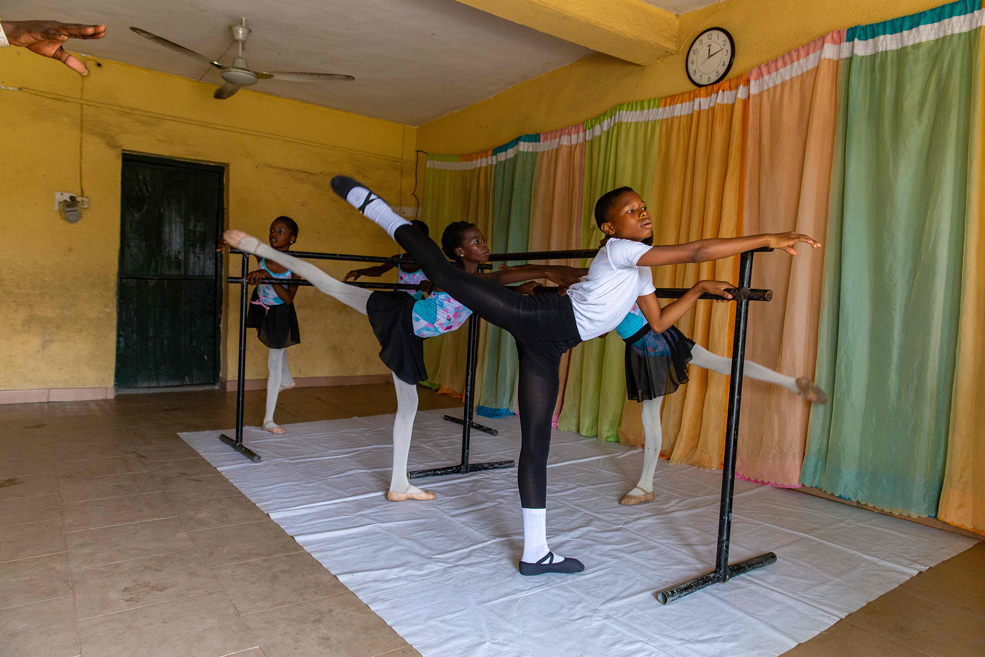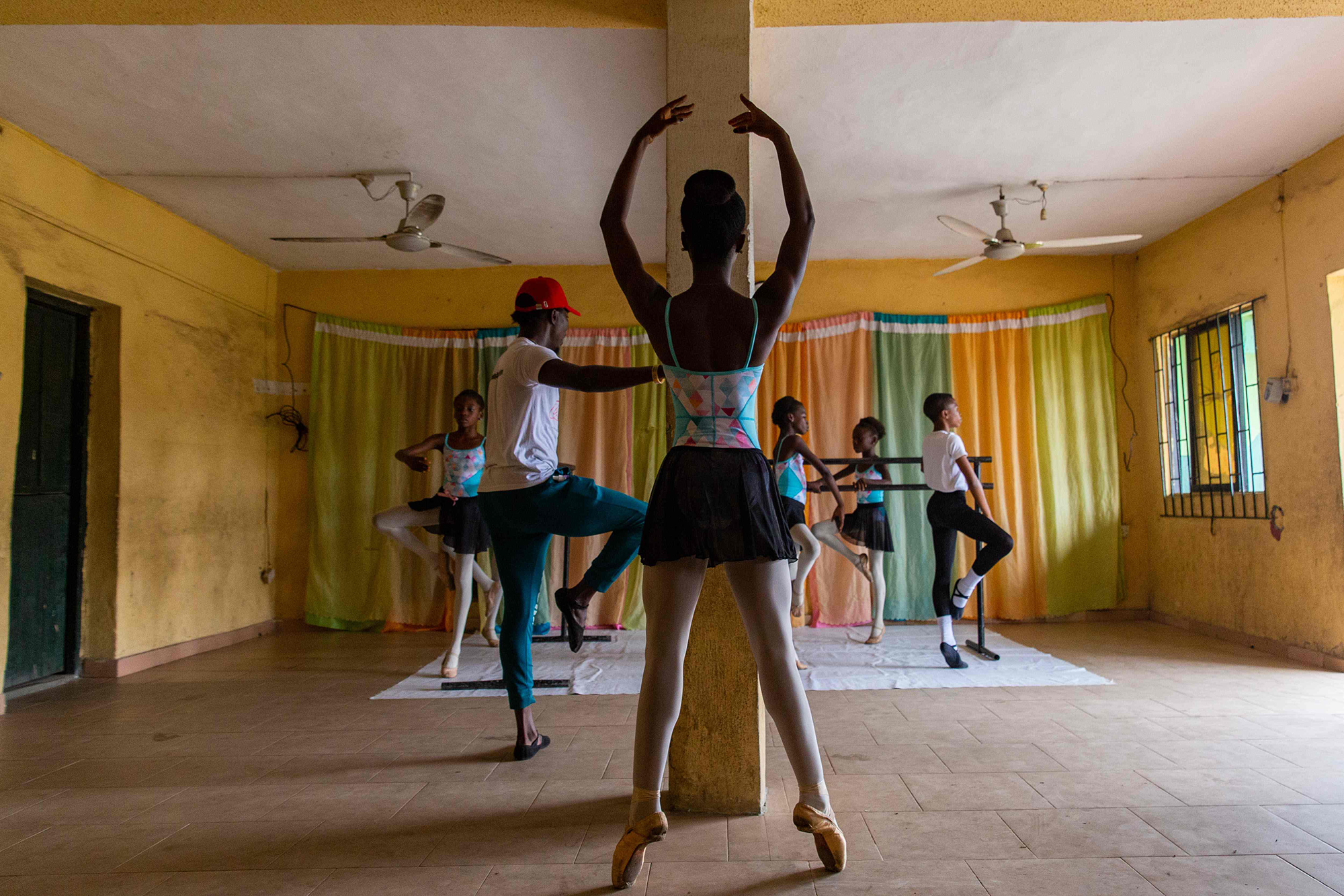 چەند خوێندکارێک لە ئەکادیمیای قەڵەمبازی سەما (Leap of Dance) لە شارۆچکەی ئاجانگبادیی نەیجیریا کە شارۆچکەیەکی هەژارنشینە، سەمای بالێ دەکەن.