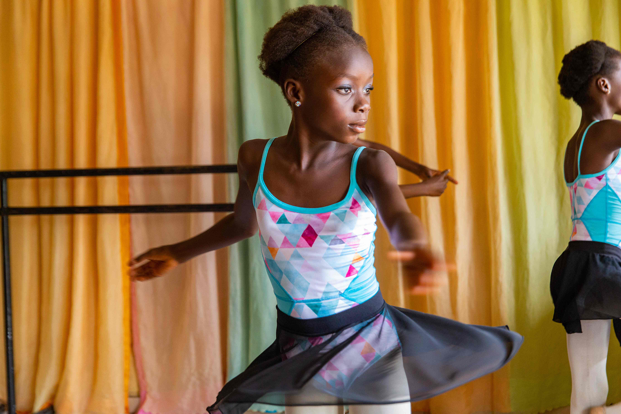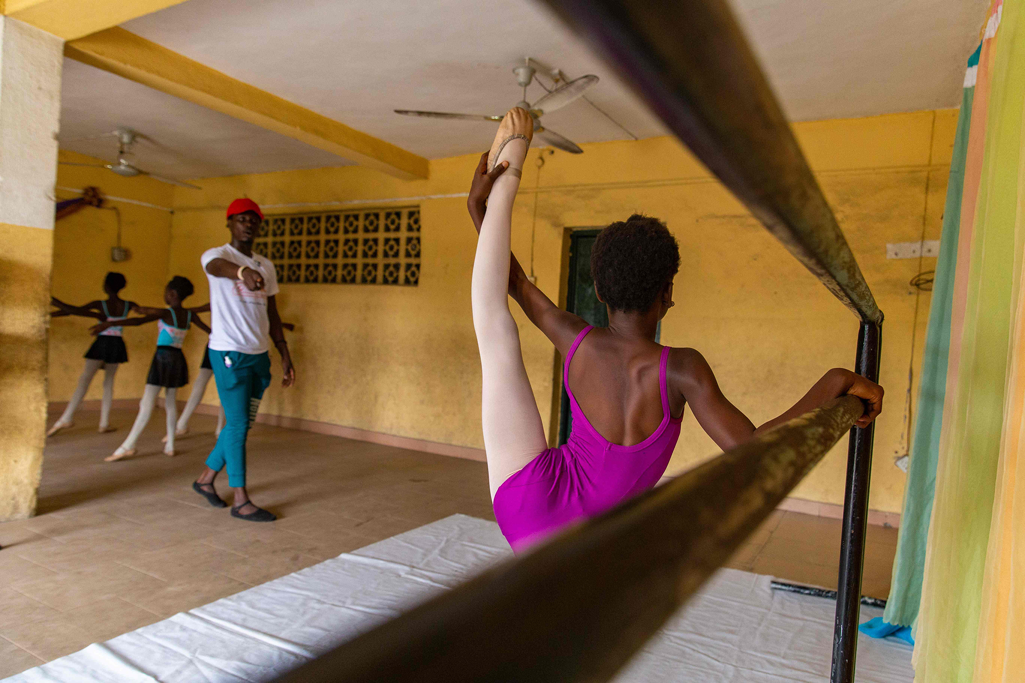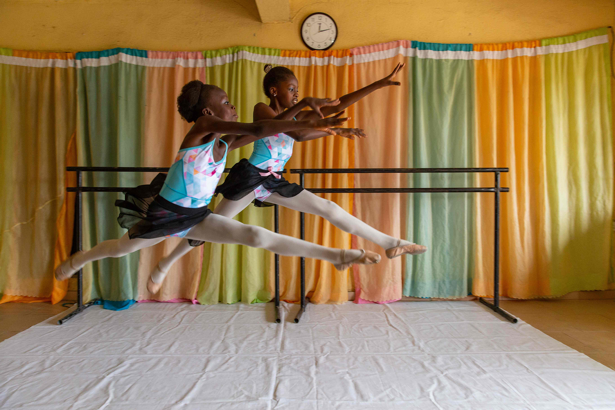 چەند خوێندکارێک لە ئەکادیمیای قەڵەمبازی سەما (Leap of Dance) لە شارۆچکەی ئاجانگبادیی نەیجیریا کە شارۆچکەیەکی هەژارنشینە، سەمای بالێ دەکەن.