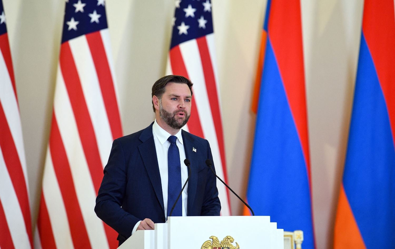جێگری سەرۆکی ئەمریکا لە لێدوانێکدا لە یەریڤان ئاماژەی بەوە کرد، دۆناڵد ترەمپ هێڵە سوورەکانی دانوستاندن دیاری دەکات، بەڵام حەز دەکات کارتەکانی بە "نهێنی" بهێڵێتەوە. ڤانس گوتی: "سەرۆک ئەوەی لە ناو دانوستانەکاندا دەیکات بە ئاشکرا رایناگەیەنێت، چونکە دەیەوێت مەودای بڕیاردان بۆ خۆی بپارێزێت و رێگە نەدات گوشاری دەرەکی سنوورداری بکات."