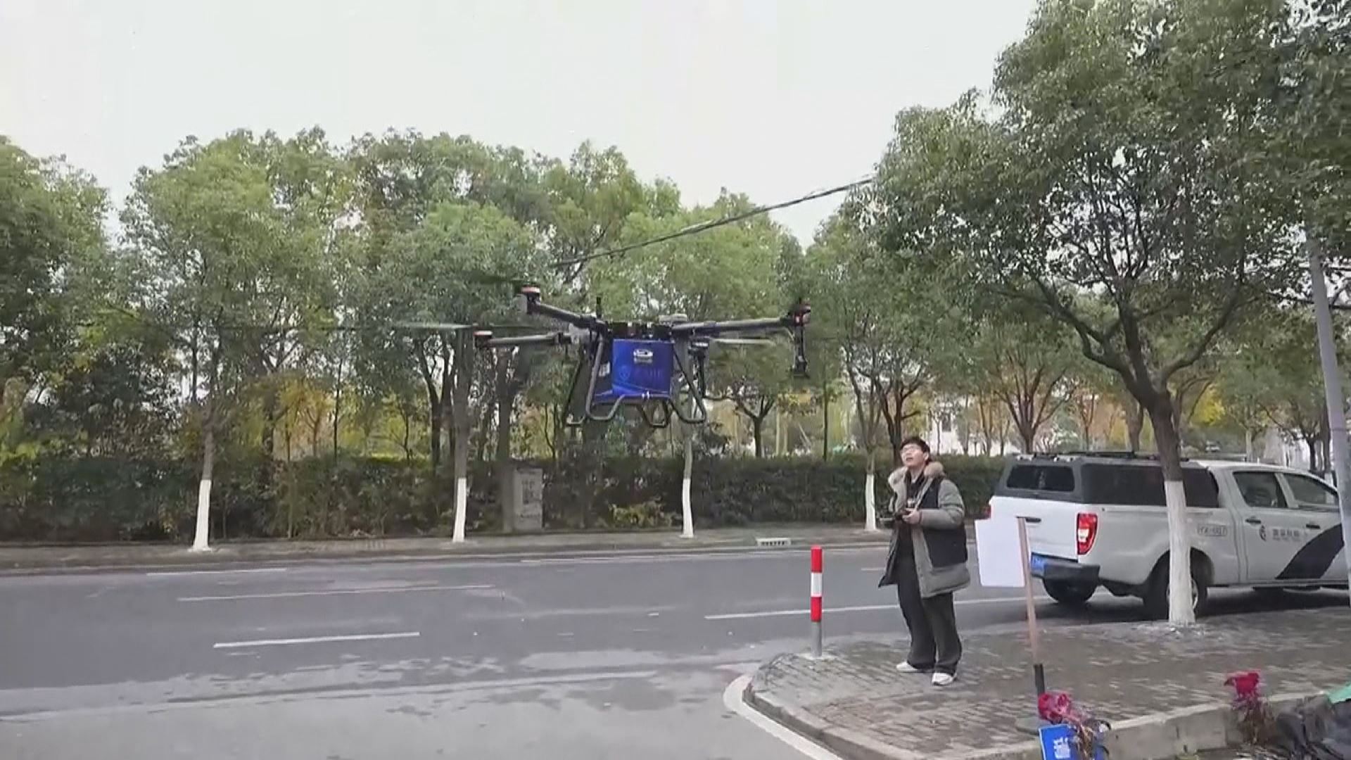 لە شاری چینگدوی هەرێمی شیچوانی چین، کەلوپەلی هاوردەکراو بە درۆن دەگوازرێتەوە بۆ کڕیارەکان. ئامانجی کارەکەش سوودوەرگرتنە لە کات و گەیاندنی خێرا.