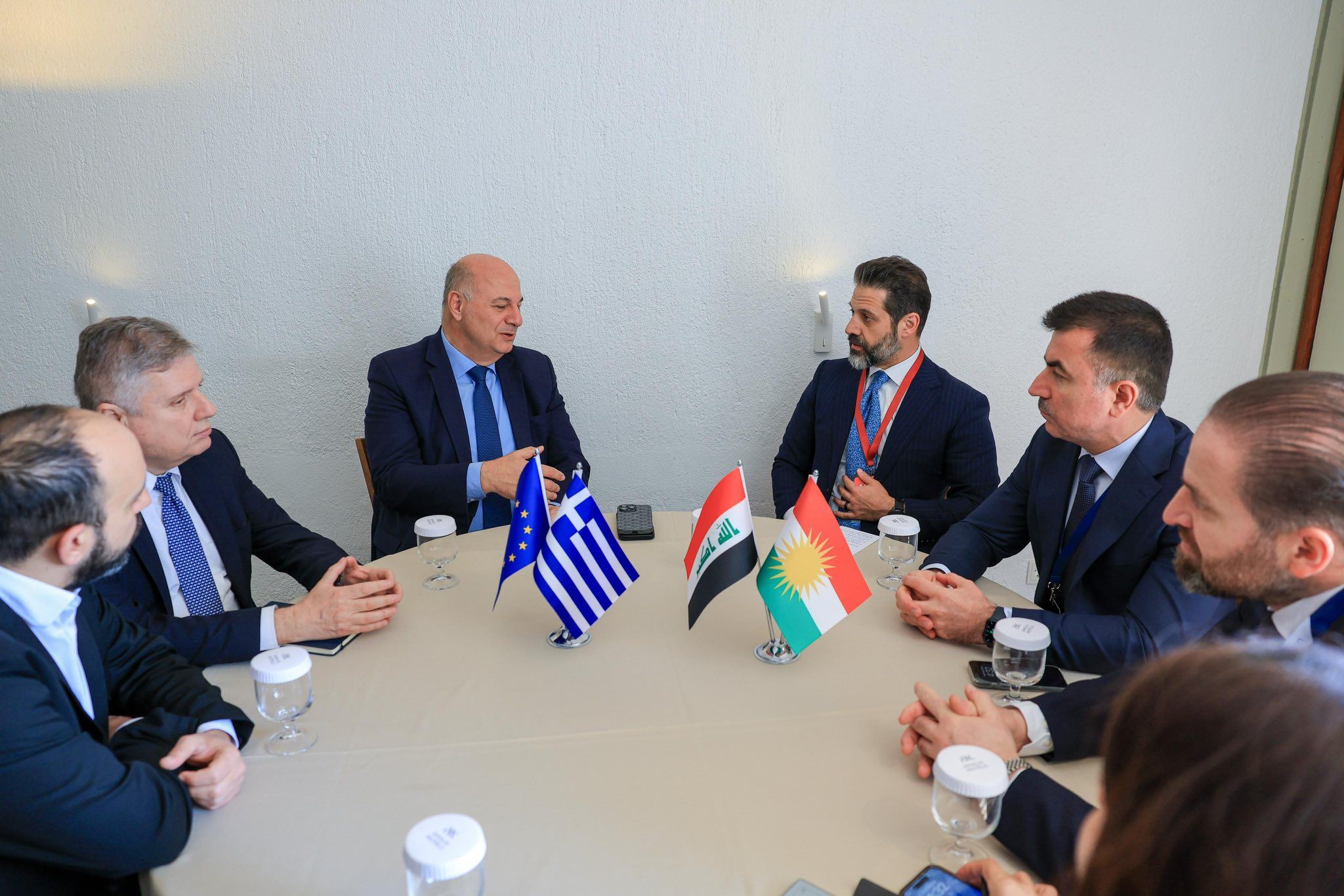 کۆبوونەوەی قوباد تاڵەبانی لەگەڵ کۆنستاتینۆس تساریاراس، وەزیری کشتوکاڵ و پەرەپێدانی گوندەکانی یۆنان لە پەراوێزی کۆڕبەندی ئابووریی دێلفی
