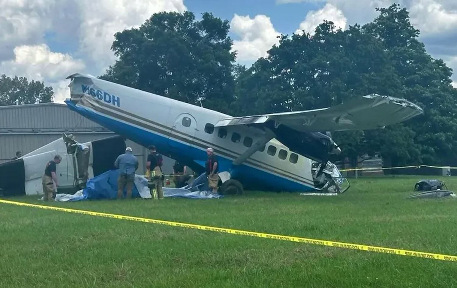 ئەو وێنانەی لە تۆڕە کۆمەڵایەتییەکان بڵاوکراونەتەوە، پێشانی دەدەن کە پێشەوەی فڕۆکەکە لەنێو گژوگیادا چەقیوە و بەشی پشتەوەشی شکاوە.